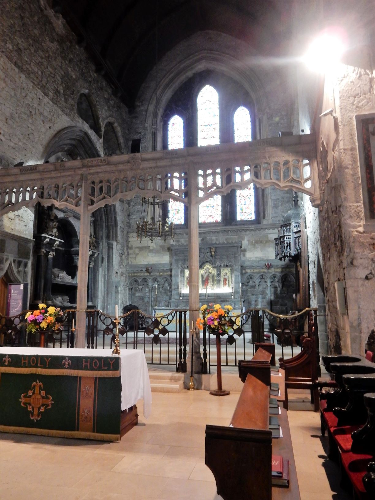 On the southern edge of the island stands St. Mary’s Cathedral. Today it’s a still functioning church where worship is offered to almighty God daily, as it has been for over 850 years (not my words, but those of the vicar). There is a daily service, which everyone is welcome to attend. This is one of those churches in Ireland that started out as Catholic but switched over to the other team after Henry VIII murdered most of the priests, so now services are according to the Anglican (Church of Ireland) tradition.