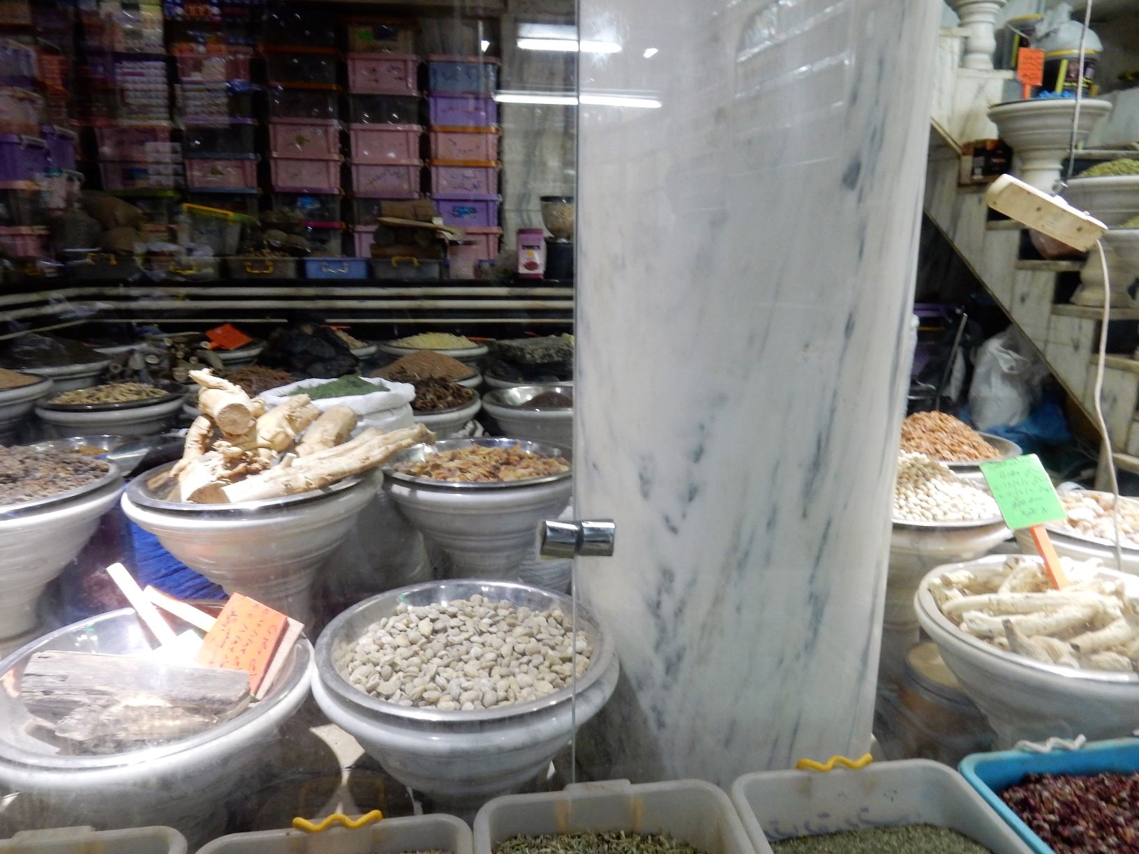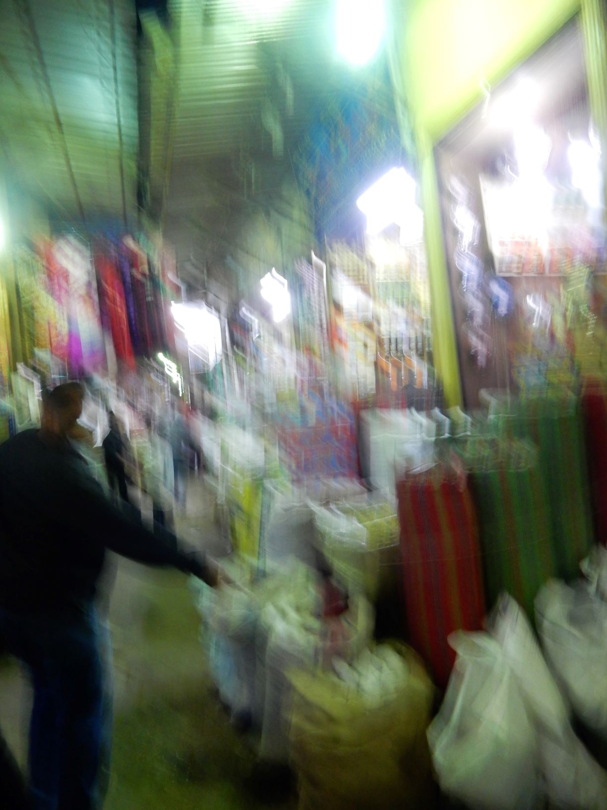 The market goes on for dozens of blocks, without rhyme or reason. You twist and turn down streets, and alleys, through buildings, down stairs, and branches, splits, dead ends, and T-bone intersections. The aisles are tall and narrow choked with crowds, moving, stopping, bargaining, with stall hawkers darting in and out like sharks in a coral reef to tantalize you with offers you have to refuse. Add push carts loaded with merchandise, motorcycles, and vendors carrying platters of hot tea and you have a hot mess that begs for catastrophes.