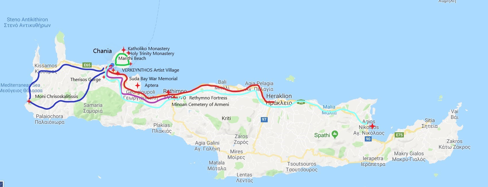 We sent in notice we were leaving, picked a place to go, found a hotel, packed up the car and were heading east out of Chania by 10:30.