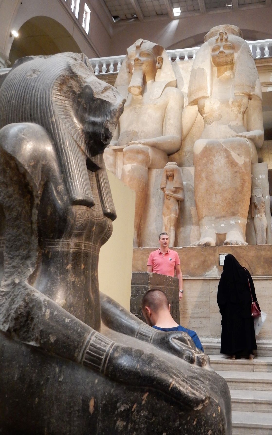 It’s a beautiful building, but it could use about a 50 million-dollar upgrade. Mostly in air conditioning, lighting, better protection for the artifacts, and non-glare glass on the storage cases. It sucks to try to take a picture of an amazing artifact and have glare on your picture. Egypt truly has too many treasures to display in the manner they deserve. If you were not prepared or looking, you would walk right past the statues that appear on the Egyptian Pound 100 and 200 pound notes. These are antiquities worth seeing. As it is, many of the treasures are stacked on top of each other and often covered in plastic as repairs go on. The lighting sucks, and rooms wander off in crazy directions. You need an Ikea-like map to guide you so that you make sure you see everything of value.