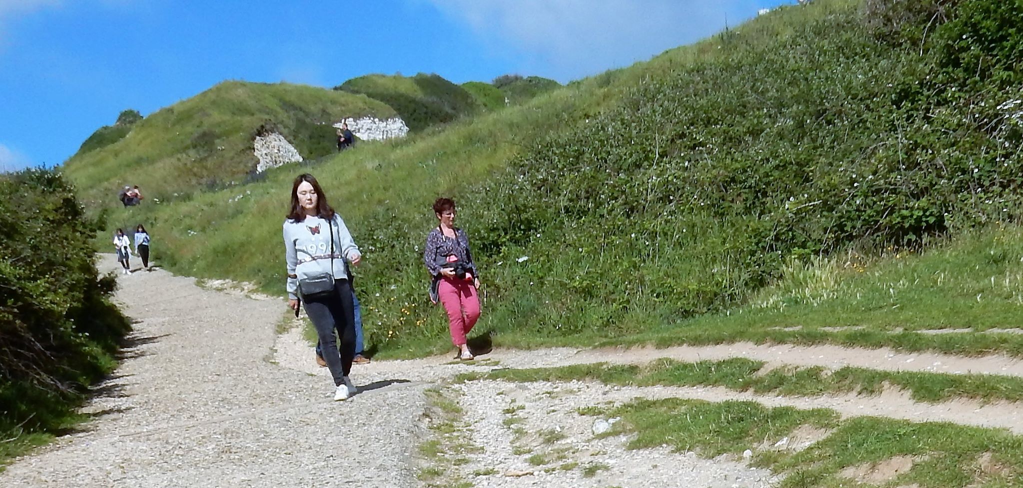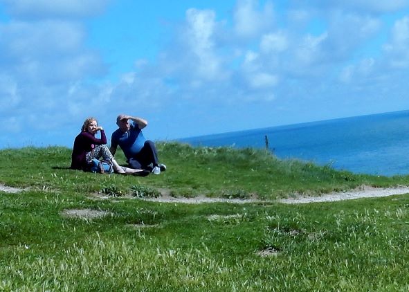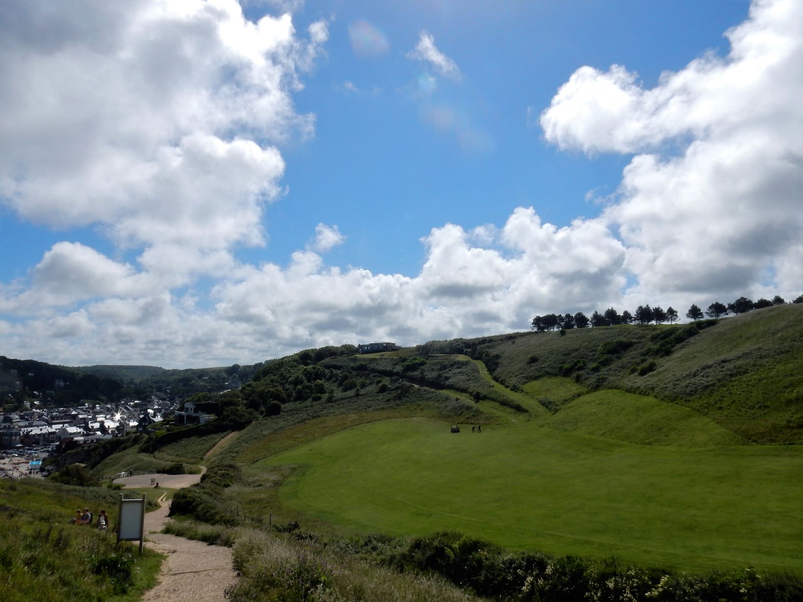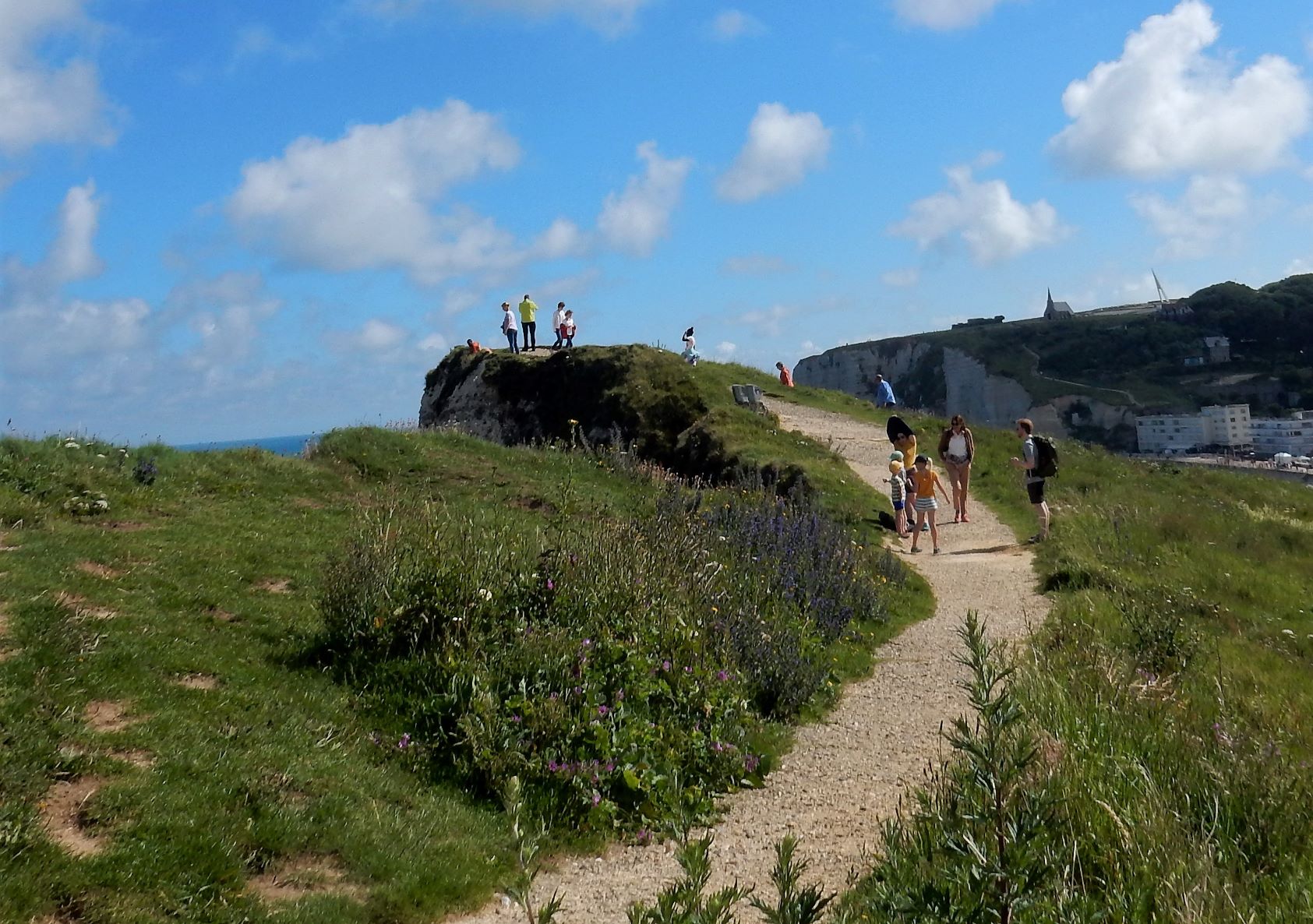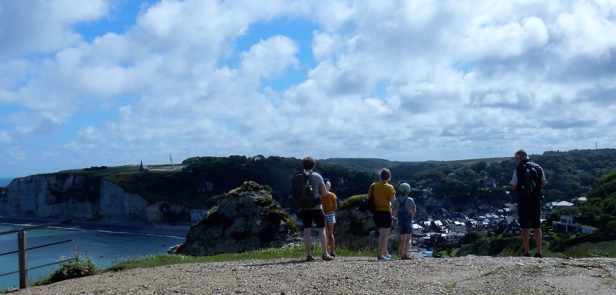 Jacques (Jock, or John if you want to Anglicize the name) the manager at Les Pins told us we must go to Étretat before we turn south for Mont Saint Michel after we leave Le Havre. It was some of the best advice we’ve received on this trip. Étretat is a commune (village) in the Seine-Maritime department in Normandy in north-western France. Originally it was a farming town on the coast of the English Channel about 32 km (20 mi) north of Le Havre, but now, it looks as if there’s as much tourist trade going on here as wheat growing.