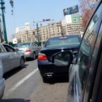 No matter how I describe it, the details cannot compare to the reality of driving in this city. These guys are amazing (women drivers too), crisply moving in and out of streams of cars, brushing pedestrians without bruising, or creasing their garments, avoiding vehicles stopping or changing lanes without the sounds of screeching tires, or crumpling metal. Think of anything a driver could perform in the US that would earn the blast of horns, shaking fists, and screams of “You Fucking Idiot!!!!!!!” and Egyptian drivers deal with it a dozen times a minute without a moment of road rage. But there are horns. A symphony of horns. Horns of every tone and timber used with frequency, relish and pattern. Car horns are more essential to Egyptian drivers than brakes or turn signals. I think I’ve deciphered the horn-honking pattern etiquette of Cairo: