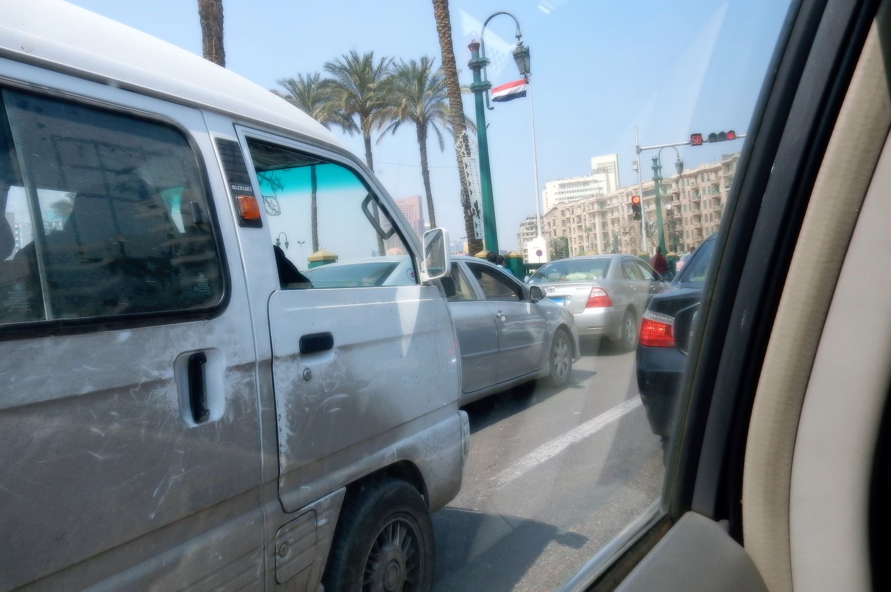 Your first impression of Egypt is that its dirty. No, I don’t mean that there is garbage everywhere (yes there is in many places) but what I mean is that everything is covered in a fine layer of dust or sand. The buildings are brown. The statues are brown. The windows are brown. The window awnings are brown. The streets are brown. And the desert is, of course, BROWN. There are street sweepers (men with brooms) on almost every block, but only to get the garbage not the sand, and there is always the sand……everywhere. So, the impression that sticks with you is BROWN. Cars are not so much brown, because people are washing them everywhere. I mean in all the open available spots….on corners, at red lights (if the drivers decide to obey the lights), in yards, on sidewalks, on freeways (yes, I saw someone washing his van on the freeway), and any vacant lot. And there are cars everywhere. The Greeks are incredibly creative on parking. Egyptians have elevated parking to an art form of conceptual creativity. Parking 4-deep on corners is normal, and they don’t double park in Cairo, they triple park and abandon the car in rush hour traffic.