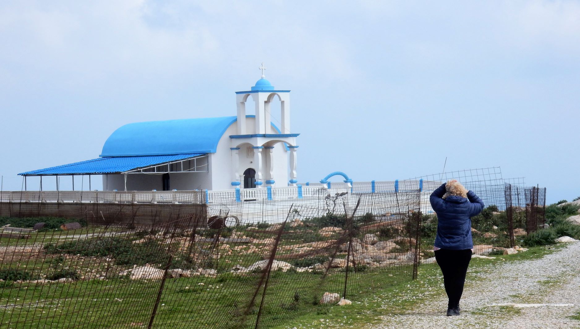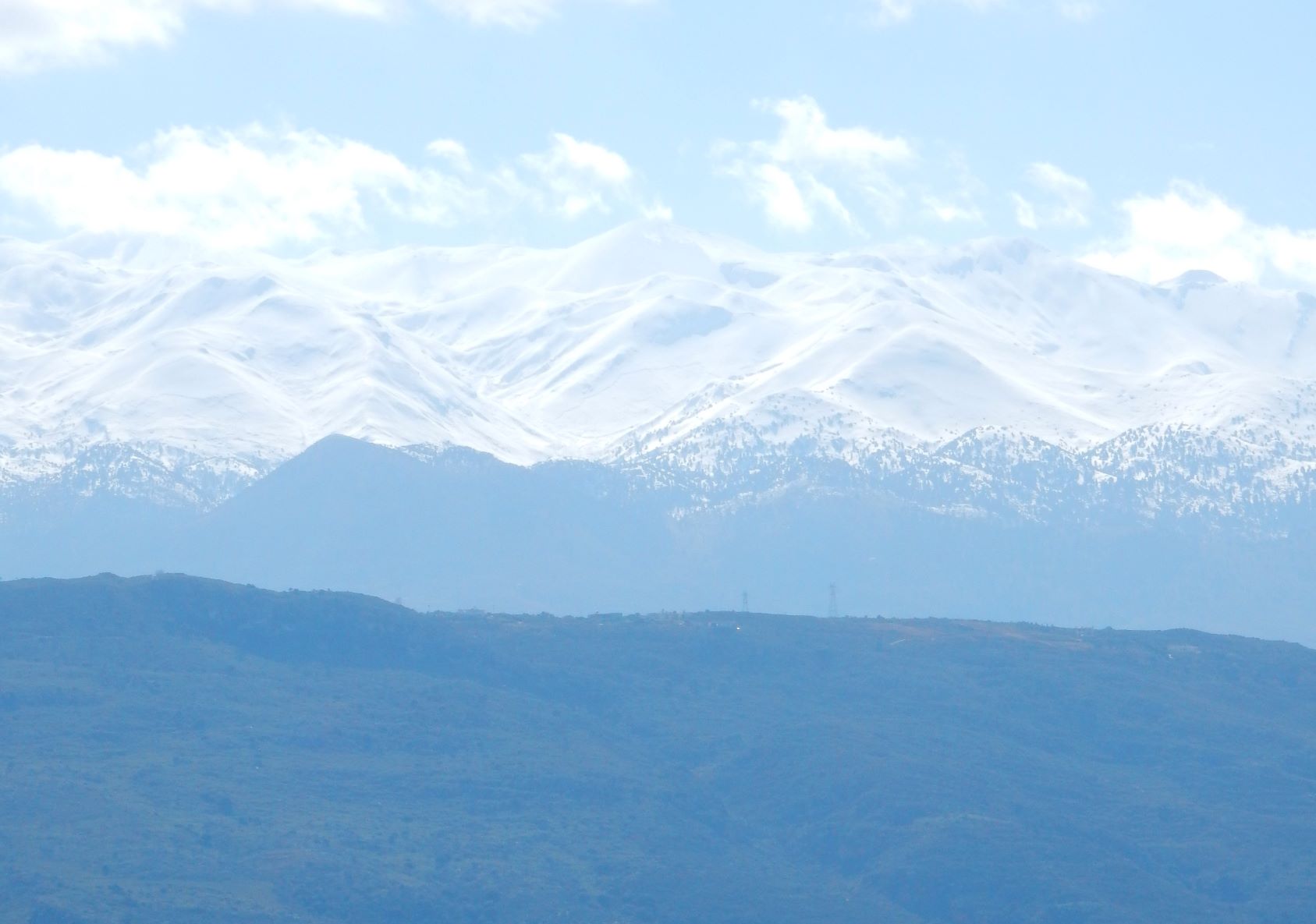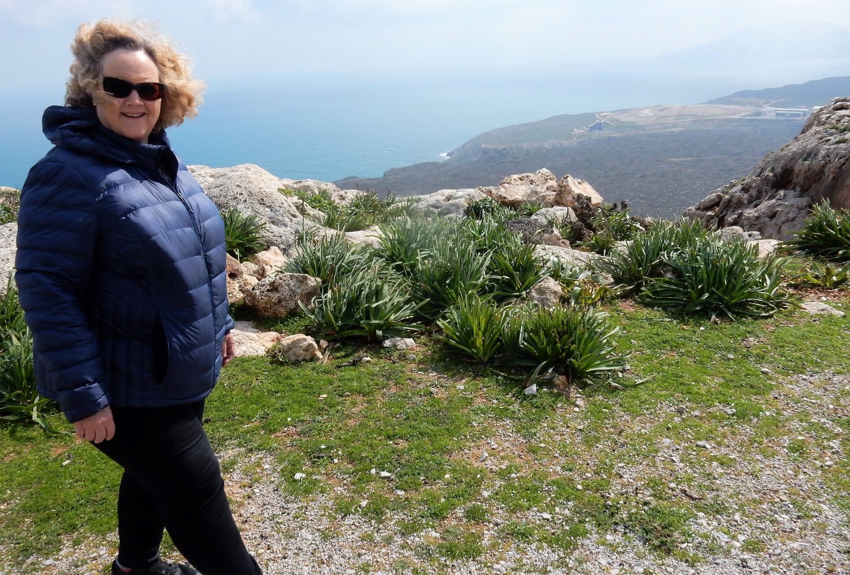 Starting slowly, we had breakfast at home and then went east to Marathi on the Souda Bay, on the southeastern coast of Akrotiri. It is a popular resort but we were only two of about a dozen in the area. It does have two beautiful beaches with fine-grained sand (which is unusual on Crete) and shallow calm water, in a bay sheltered by Old Suda Island. The beaches are separated by a small pier, which from what I could tell only served fishing boats and a few pleasure craft. There is a row of beach cabins and restraunts along the bay so you never need worry about getting hungry or thirsty.