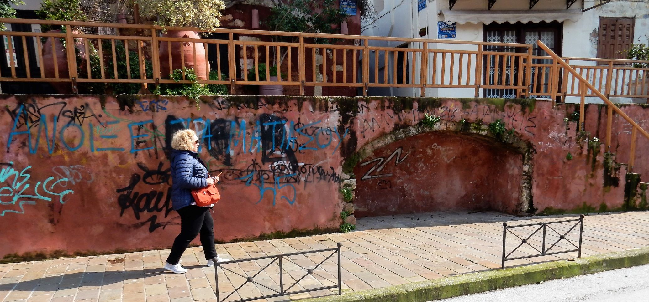 High on the peak of the park is the statue of Spyros Kayales holding a Greek Flag. On 9 February 1897, during the great bombardment of the Cretan revolutionaries by the fleet of the Great Powers (England, Germany, Italy, Spain, etc… an early version of the EU), he made his body a flagpole to hold aloft the Greek flag, which had been shot down by the shells.
