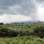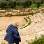 Of course, the day we chose to visit Aptera was projected to be cold, windy, with scattered showers beginning around 2PM. So, yeah let’s trek up the side of an escarpment to an ancient acropolis on roads meant to carry mopeds and mule carts. Sounds like a well-thought-out idea. So, yeah that’s what we did. We had no problem going to the village below the site, but as we wound our way up the hill we saw a problem. No, 5 problems. Tour busses. Honest, we haven’t encountered these so far, but there they were….busses, heading down hill on a road 13 feet wide.