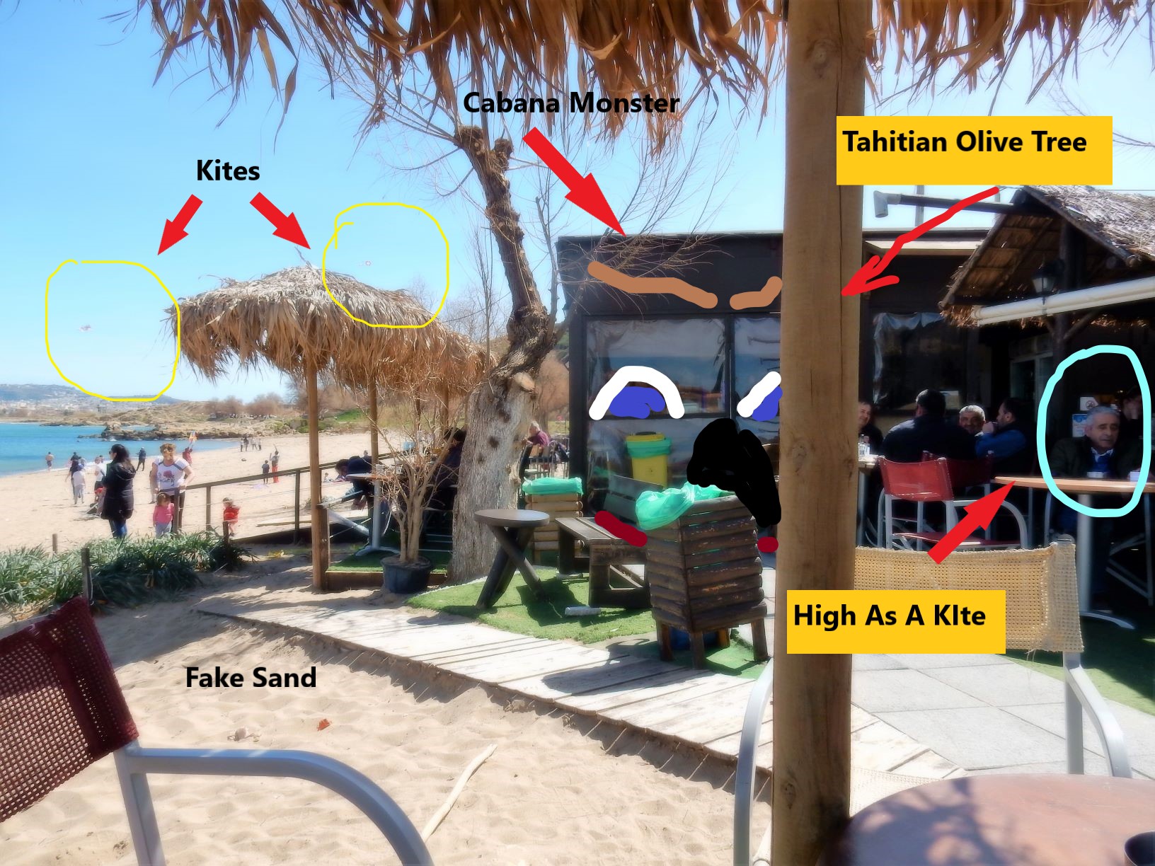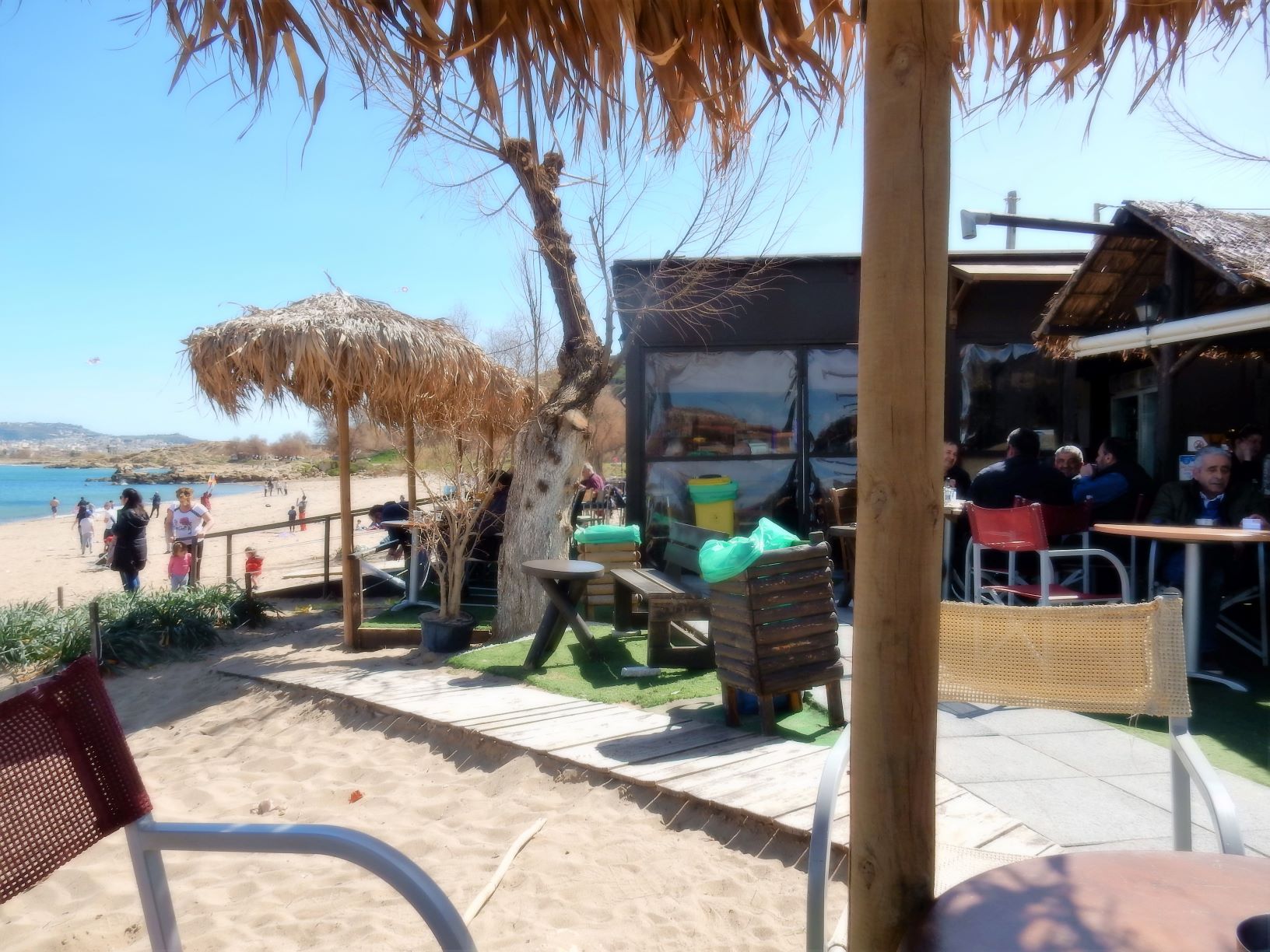 So, in honor of the day, and on the advice of the Air B&B host we headed off to a beach on the west end of Chiana Old Town where we may best watch the exhibition of Clean Monday. The beach was packed, windy (very windy), and every 100 meters (62 feet) there was a kite stand, typically a 1971 Datsun mini van, or other such vintage vehicle/kite kiosk. We walked about the beach a bit, but found that to be hazardous with kids of all ages running around without watching for course/trajectory/obstacles, and errant kites imitating German Stuka dive bombers during the battle of Souda Bay. We chose the safe option to find a beach-side bar from which to watch the activities and enjoy my new favorite beer, Mythos (in the economical 500 ml bottle).