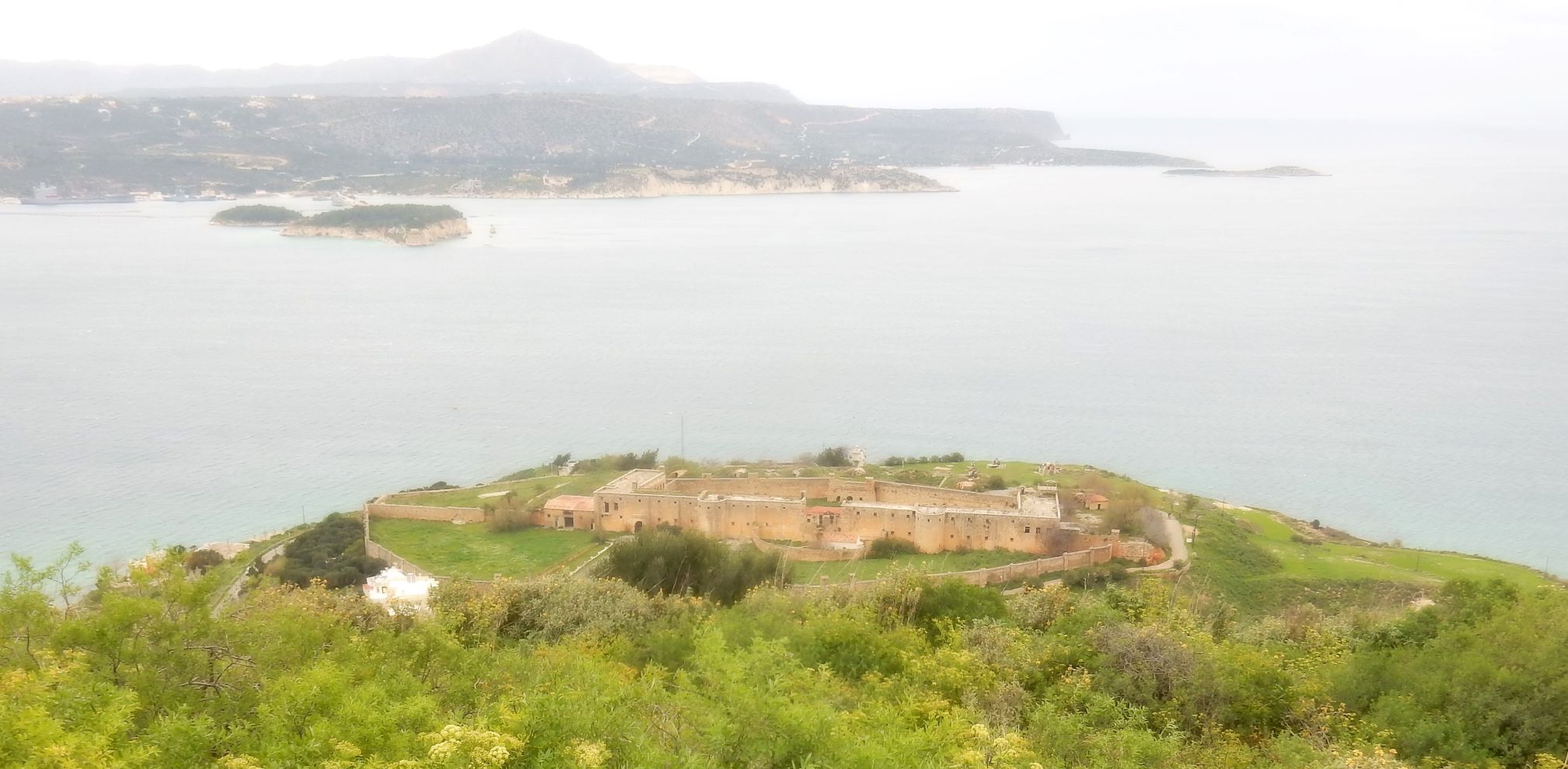 Aptera was one of the most important city-states of Crete. The site is located on a plateau high above Souda Bay, about 15 km away from Chania east on the road towards Rethymno. The two city ports of Minoa (today’s Marathi) and Kisamo (current Kalives) made Aptera one of the most important commercial centers of Crete. Its inhabitants were skilled soldiers, especially in archery and often sold their services to other countries as mercenaries which was a pretty profitable export for Aptera. What a deal it was….diddle the women, make babies, give the babies bows for their first birthday, raise them up, ship them off to war, but make sure their paychecks come to the city-state treasury. Quite the marketing plan.