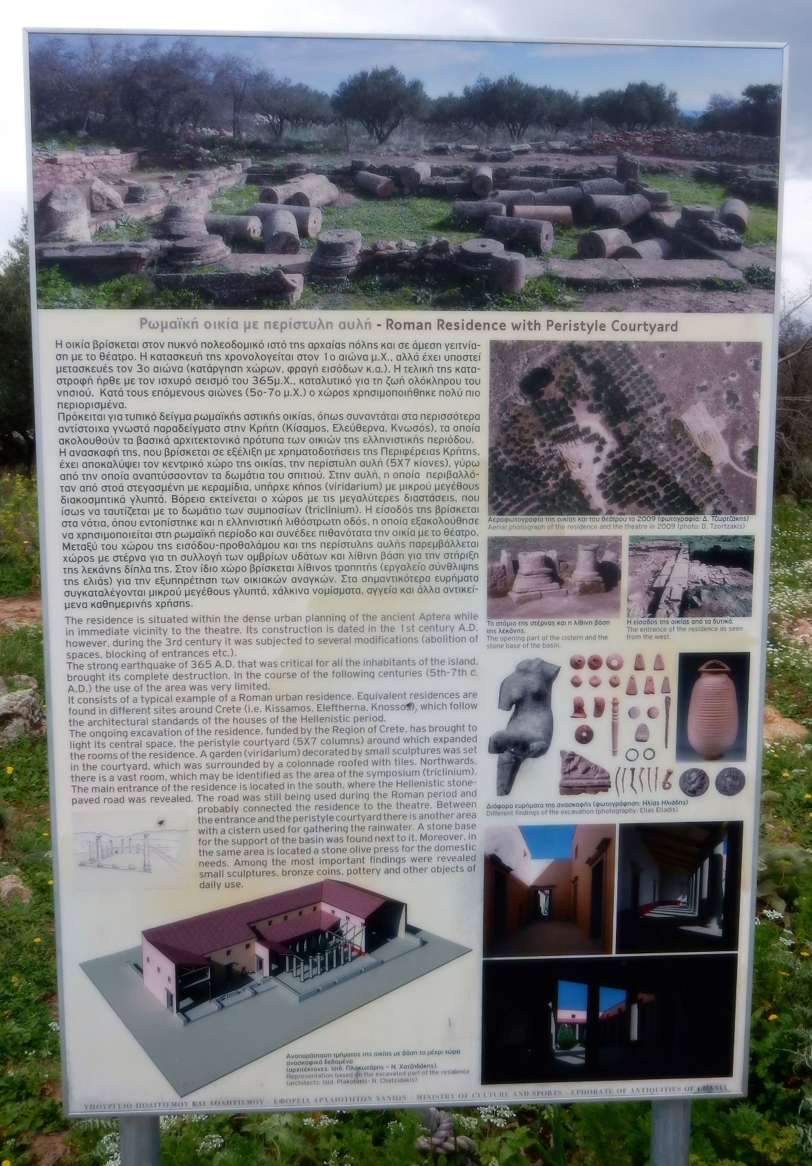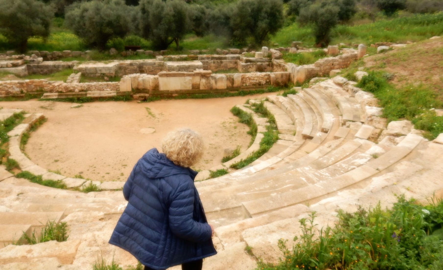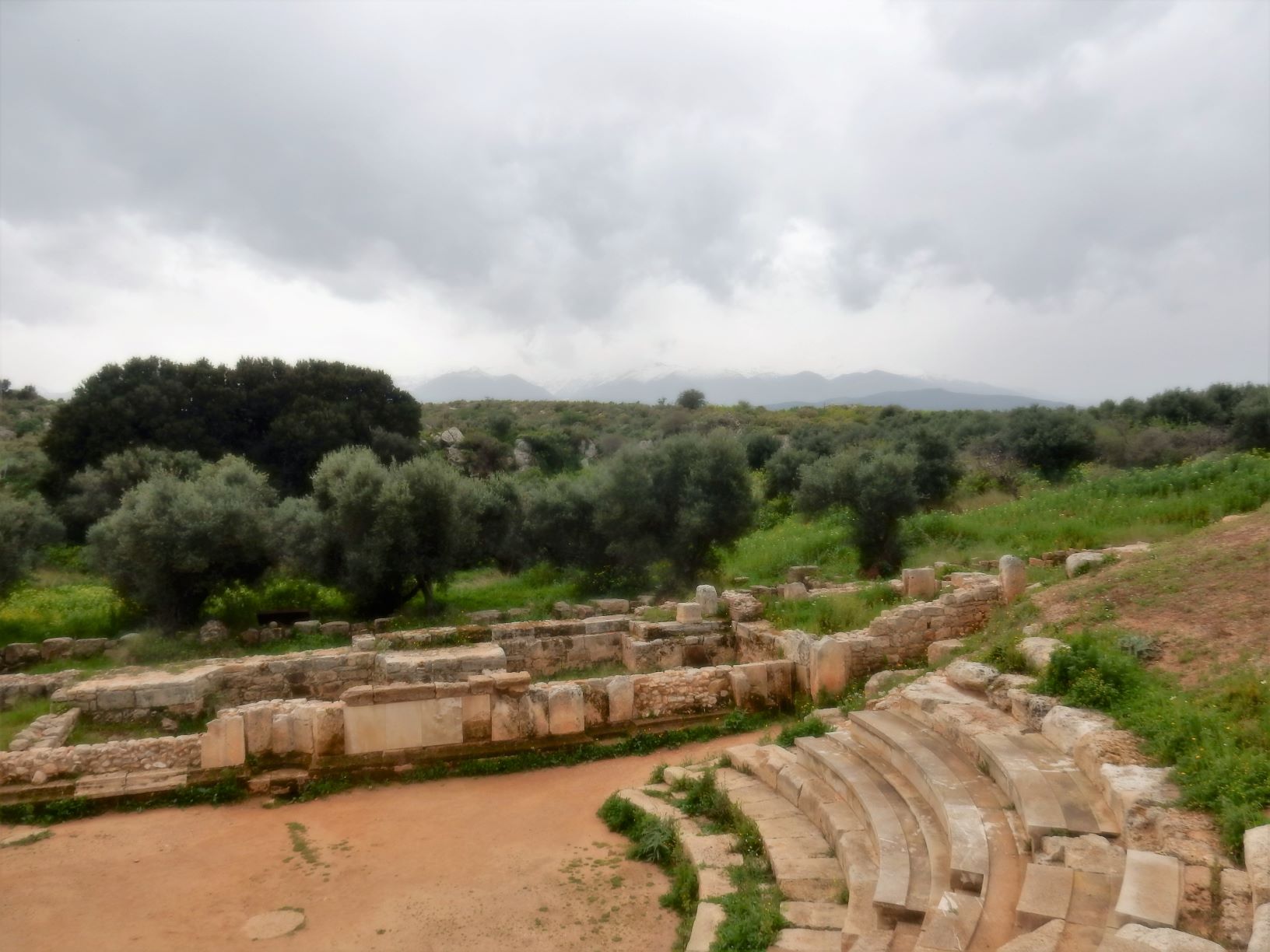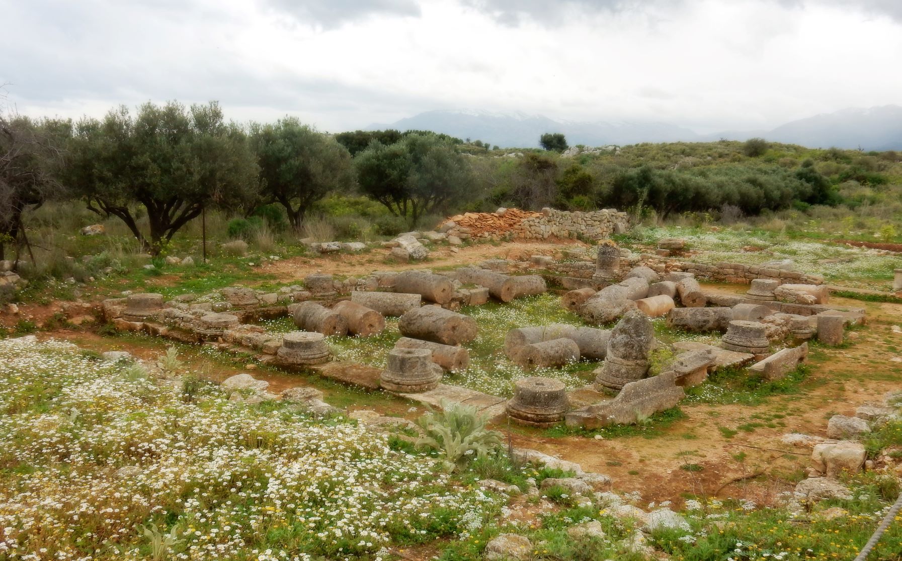 After a day of peril and prawns dodging and watching dozens of kites crash into the Sea of Crete, Ellen and I decided we needed to get out of the city, stretch our legs and look at real estate developed by people before the ages dark, when people thought the world was flat. Fortunately, we’d been researching western Crete on the Internet and thought we had a likely candidate. What’s even better, I’d never heard of the place. Aptera.