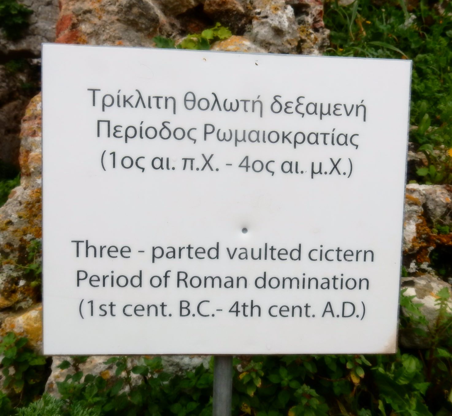 During the Pax Romana period of the Roman Domination the city of Aptera started to shrink economically and politically while agriculture started to flourish. While its occupation continued during the Byzantine years it didn’t prosper. Agriculture is still flourishing. The olive groves are amazing and you can’t take 10 steps without bumping into a sheep or goat. In our opinion, the most fascinating ruins were the Roman cisterns. The scale and condition are remarkable, and the acoustics inside were amazing.