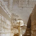 Next down the road is the Ramesseum, which is the memorial temple (or mortuary temple) of Pharaoh Rameses II. It was researched and explored by a Frenchman Jean-François Champollion, who visited the ruins of the site in 1829 and first identified the hieroglyphs making up Rameses’s names and titles on the walls. It was originally called the House of millions of years of Usermaatra-setepenra. It is an impressive structure, rivaling the temples on the east side of the Nile.