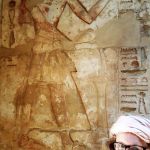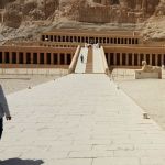 Around the corner to the right of the colossi is the Mortuary Temple of Hatshepsut, also known as the Djeser-Djeseru. It’s a mortuary temple built for the Eighteenth Dynasty pharaoh Hatshepsut (a lady pharaoh that glued on a beard to blend in), it is located beneath the cliffs at Deir el-Bahari on the west bank of the Nile near the Valley of the Kings (she wasn’t allowed into the boys club in spite of the fake whiskers). The temple, dedicated to the god Amun is situated next to the mortuary temple of Mentuhotep II, which served both as an inspiration and later, a quarry. The temple is considered one of the “incomparable monuments of ancient Egypt.” (probably written by a tour guide in the Egyptian Department of Antiquities).