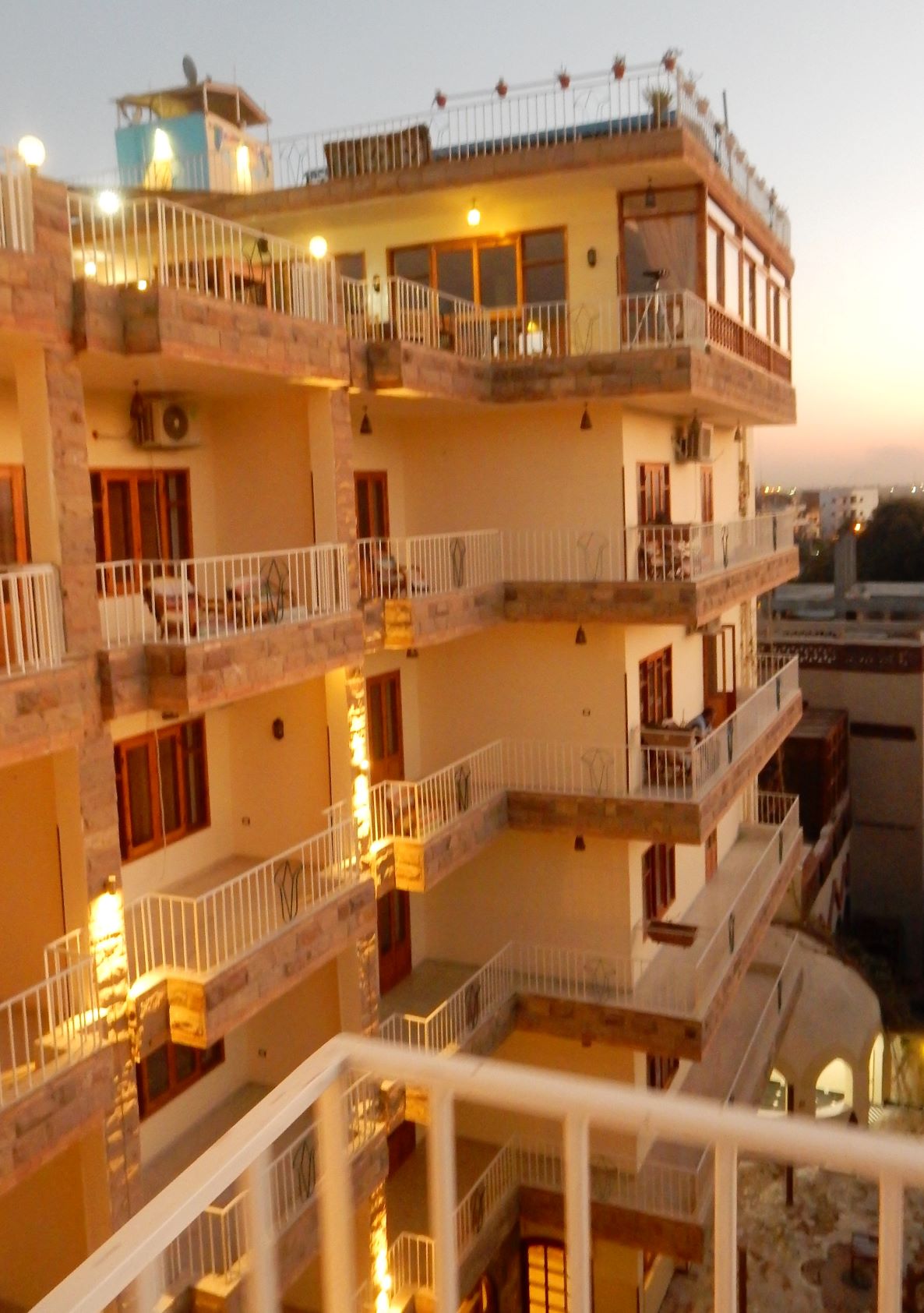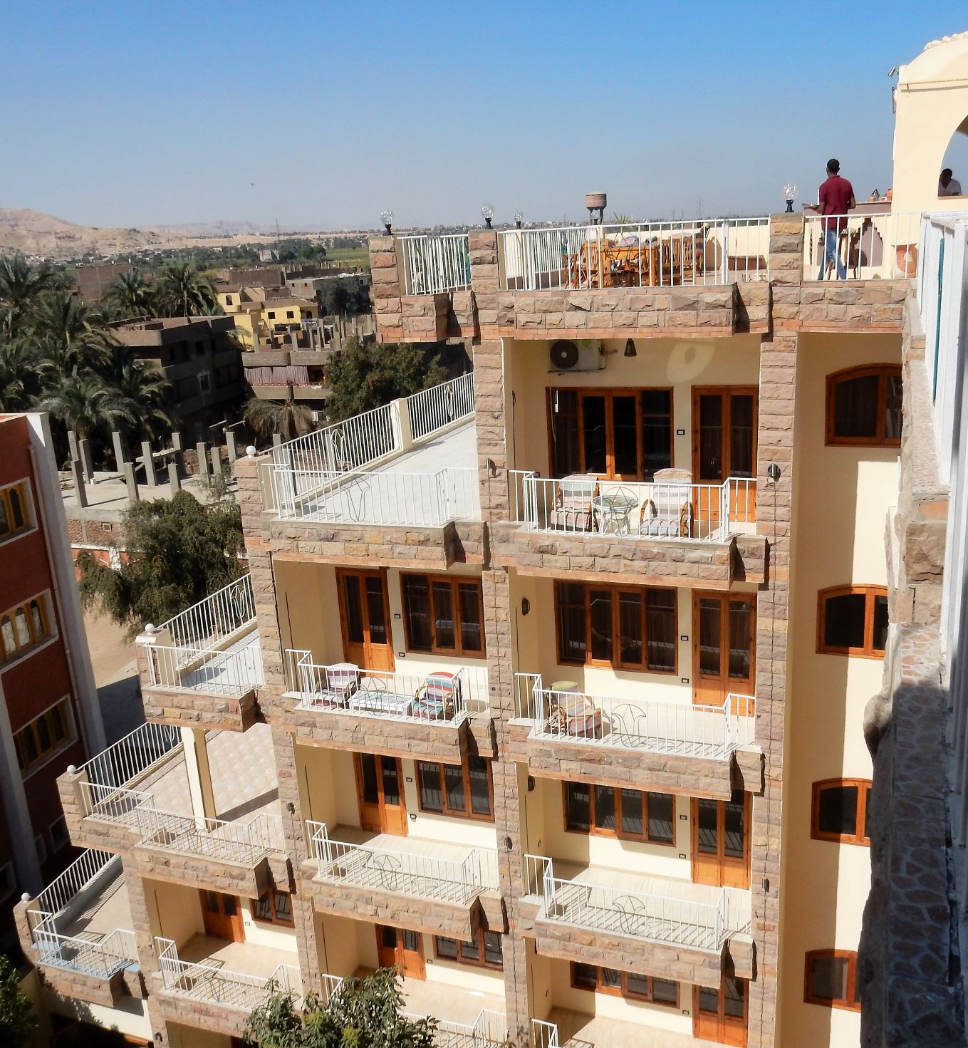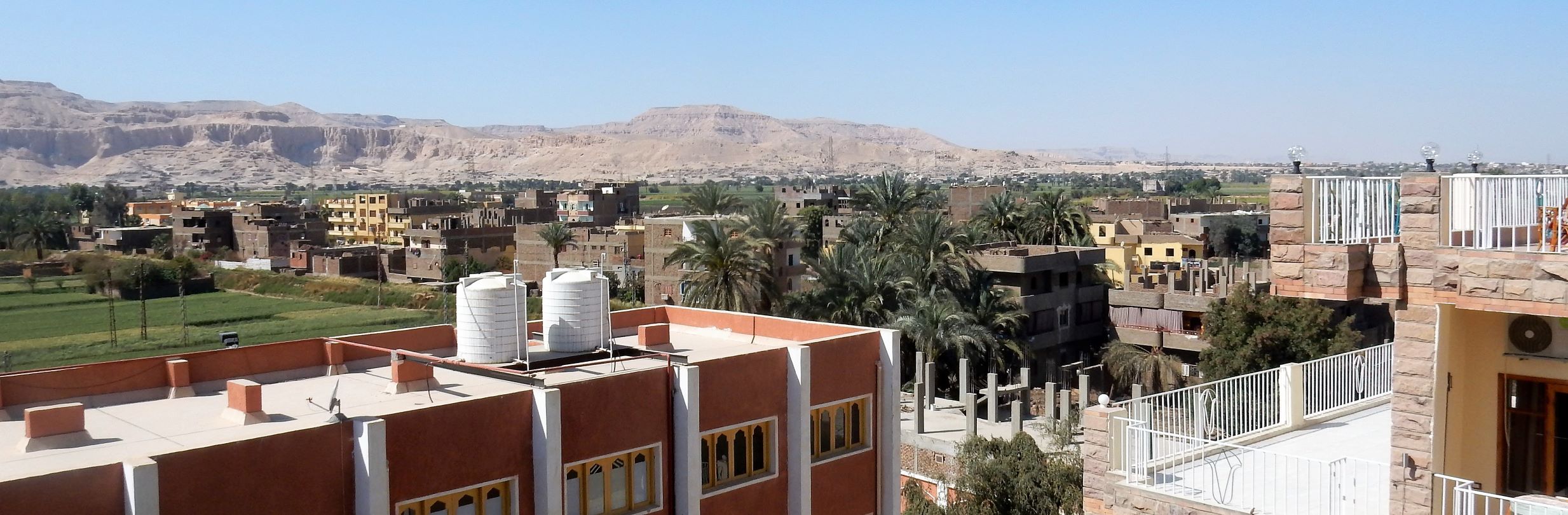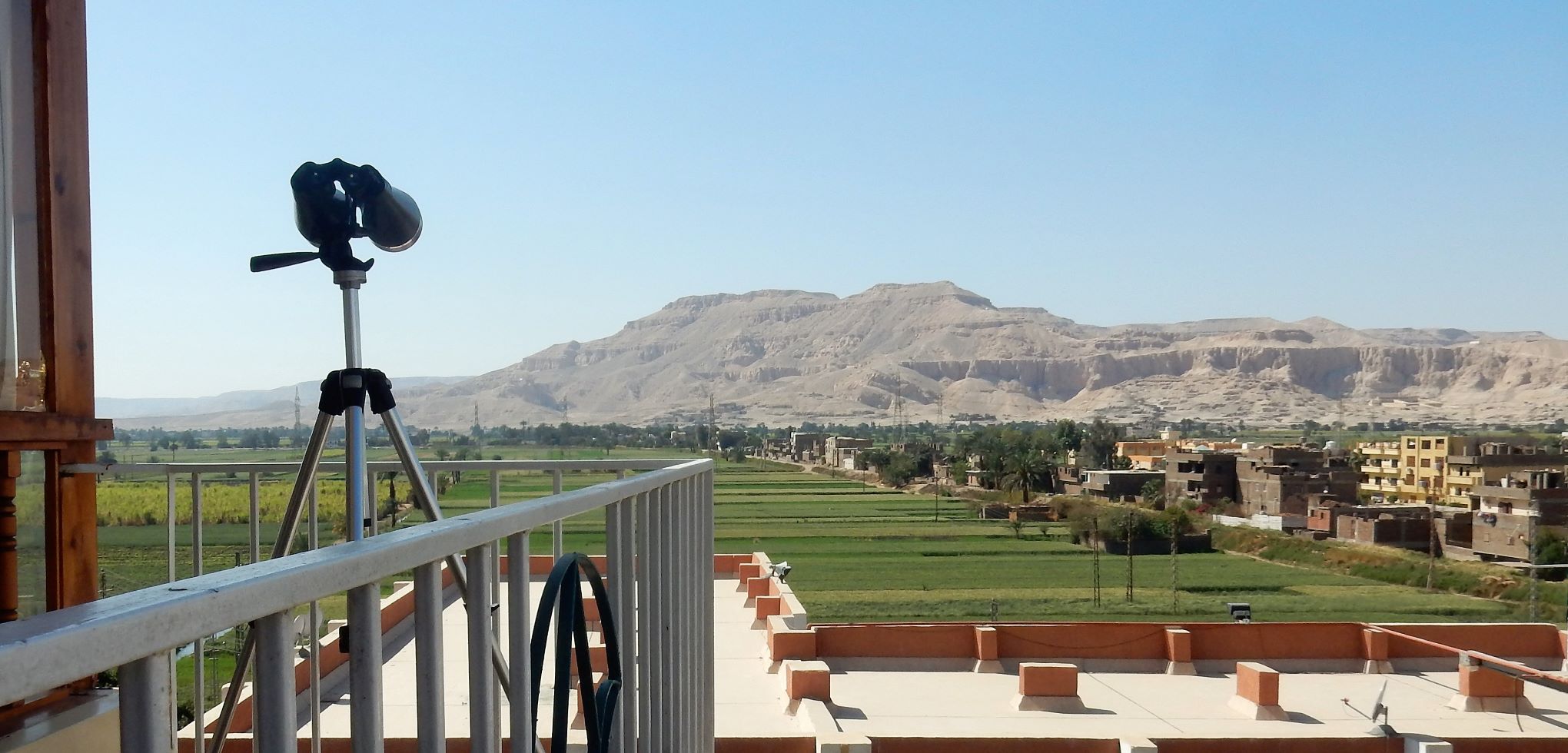 We missed the entrance to the hotel. Understandable as a donkey was parked in the drive between the chicken cages, and the half dozen kids playing soccer on the roadside. We did a U-turn by the cop with the Uzi, backtracked and turned in down a narrow alley and came to the hotel. It was not a first impression made for love at first sight. Four guys erupted from the front door of the hotel to help us with our luggage before we could urgently explain to the driver we wanted to leave. Grudgingly, into the hotel we went with mixed emotions, and walked into paradise on the Thebes. No, not the Thebes River, it’s close to the Nile, but that’s the name of the hotel, the Thebes Hotel (https://hotelthebes.com/).