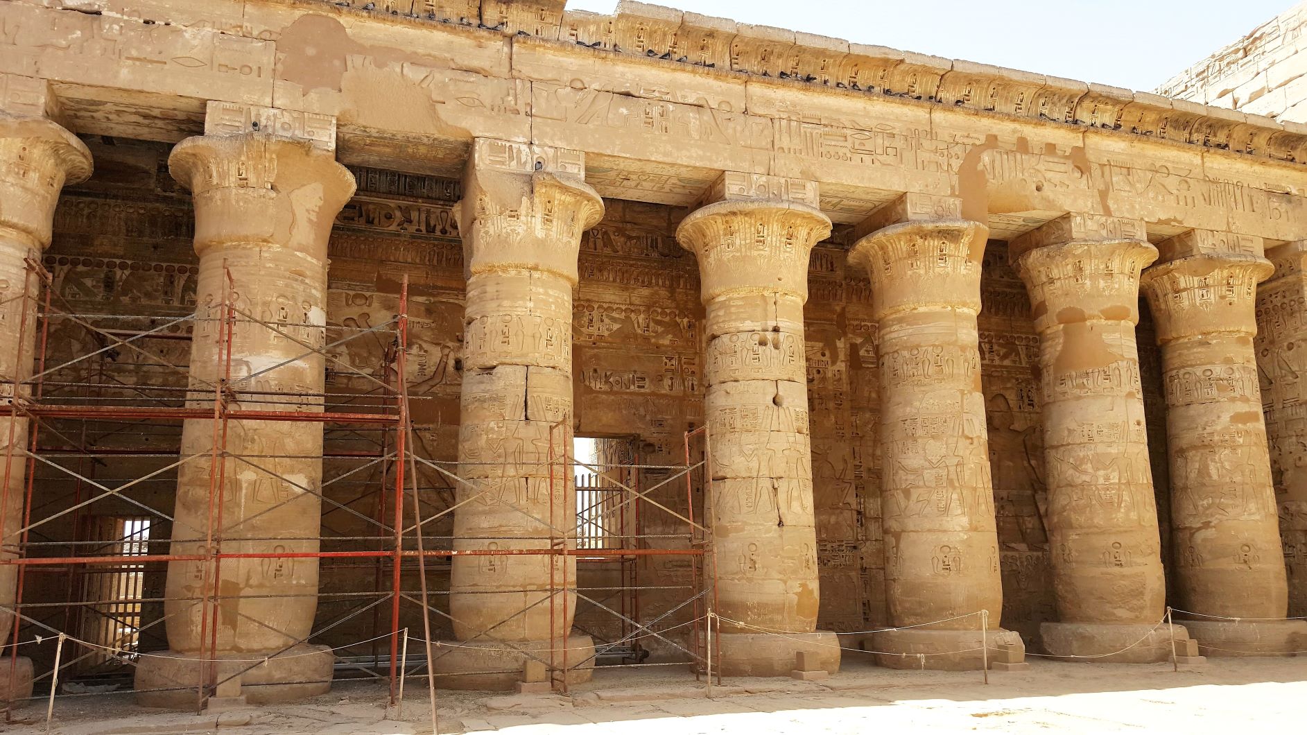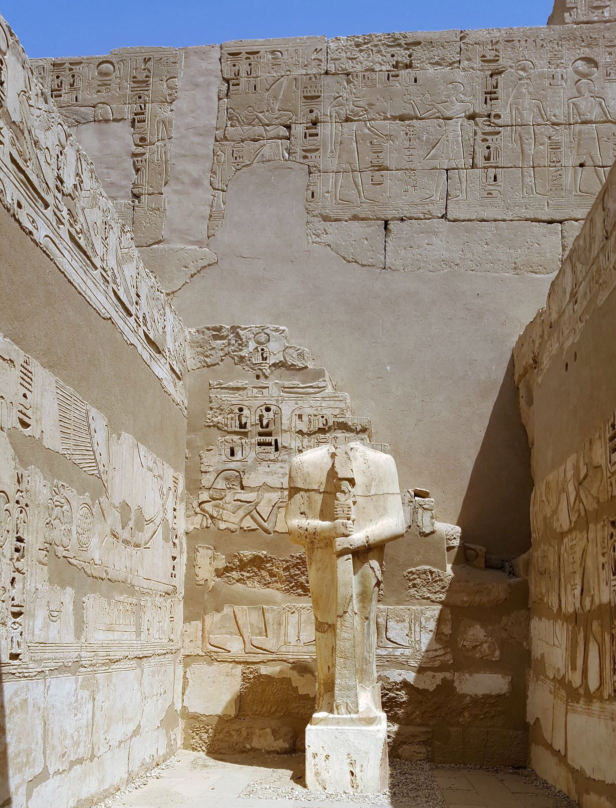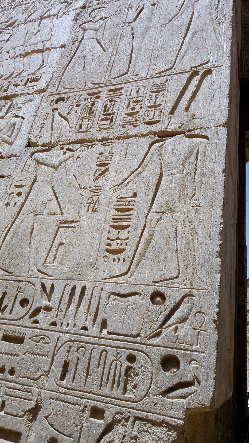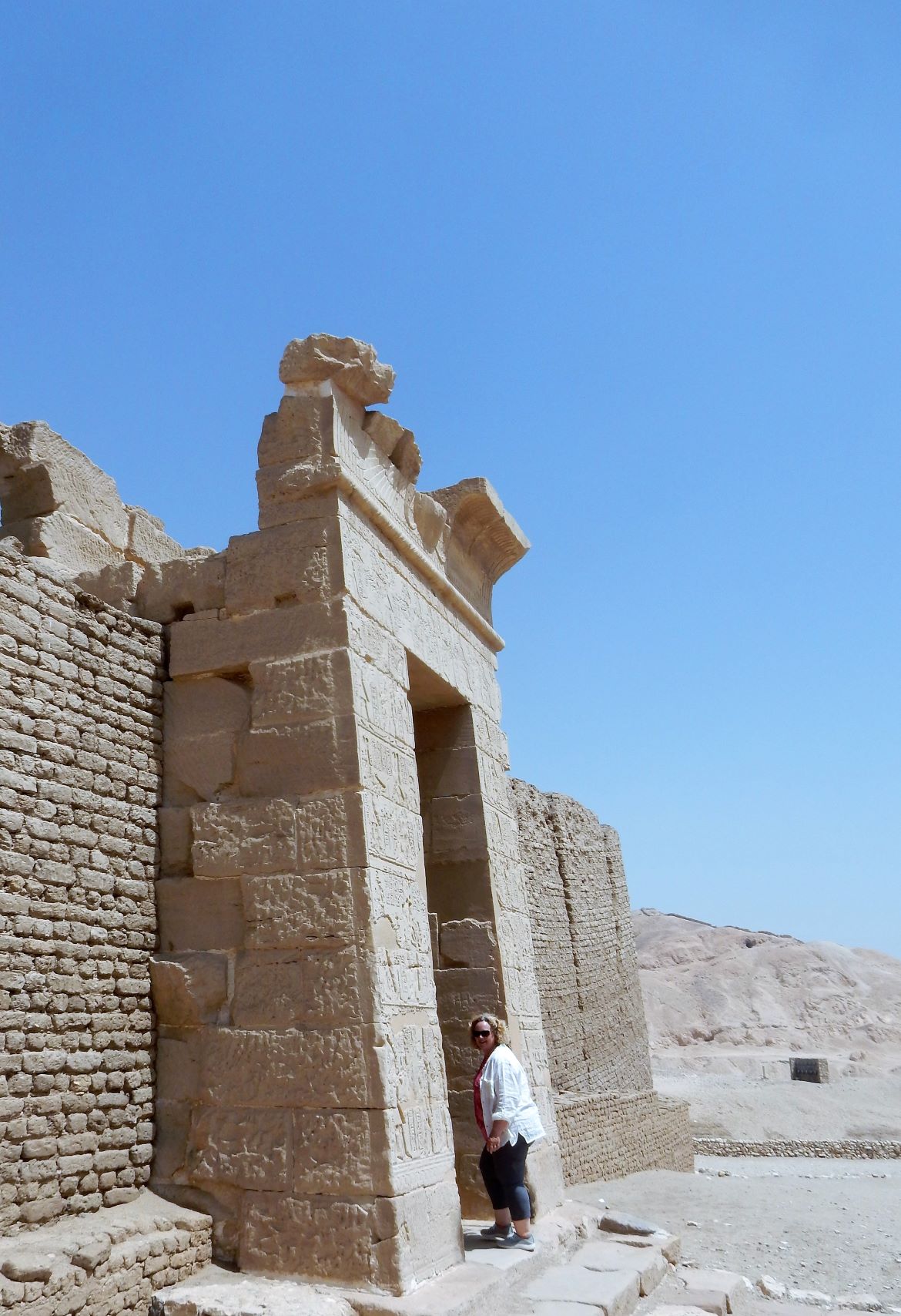 Around the corner to the right of the colossi is the Mortuary Temple of Hatshepsut, also known as the Djeser-Djeseru. It’s a mortuary temple built for the Eighteenth Dynasty pharaoh Hatshepsut (a lady pharaoh that glued on a beard to blend in), it is located beneath the cliffs at Deir el-Bahari on the west bank of the Nile near the Valley of the Kings (she wasn’t allowed into the boys club in spite of the fake whiskers). The temple, dedicated to the god Amun is situated next to the mortuary temple of Mentuhotep II, which served both as an inspiration and later, a quarry. The temple is considered one of the “incomparable monuments of ancient Egypt.” (probably written by a tour guide in the Egyptian Department of Antiquities).