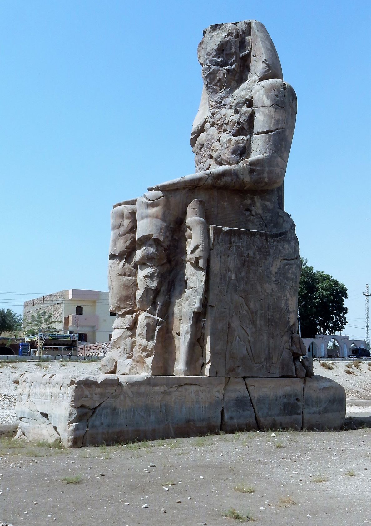 The Colossi of Memnon are two massive stone statues of the Pharaoh Amenhotep III, who reigned in Egypt during the Dynasty XVIII. For the past 3,400 years (since 1350 BC), they have stood in the Theban Necropolis, located a few kilometers west of the River Nile. Now, it’s like a roadside park between Amarillo and Lubbock that you must stop at because you have to pee. They just kind of jump out at you from the side of the road. Stop, take a look, snap a few pictures and go. Its all roped off so you can’t walk around the site, but its free, which is the only free site I can recall that doesn’t cost anything. If you stuck these statues in a US museum, they would be the star attraction and have lines at the ticket office.
