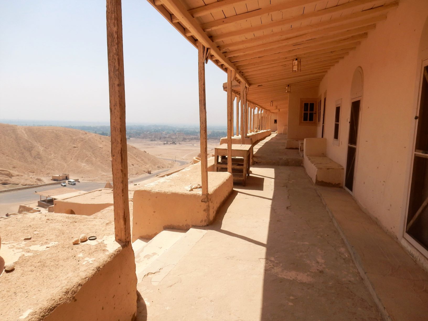 Linda checked us in and said she had upgraded us since we had extended our stay. How cool is that? Our room was large with a king size bed, a private balcony and a common patio that nobody ever came to. We are one flight under the roof-top pool/bar/café that had a killer view of the Mortuary Temple of Hatshepsut, the Valley of the Kings, the Valley of the Queens, Tombs of the Nobles, and one camel munching on sugar cane in the field below us. I think I’ll name him Frank in honor of Ellen’s friend from the Bazaar.