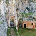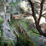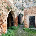 The monastery is now deserted, but can be accessed by the trail that that starts from the gates of Monastery Gouverneto (20-30 minute walk). The nicest thing about this walk is there’s a parking lot for your car and its easy to come through the gate and take the hike. In the monastery there is the Cathedral of St. John the Hermit and his Cave, the ruined monks’ cells (dank holes in the wall) and the impressive old bridge that crosses the river. Beneath the floor of the bridge there are still several storage rooms. To be honest, we’d been to Monastery Gouverneto before, but we thought you needed to find Moni Katholiko from a trail that started in Stavros, which is about 6 klicks to the west.