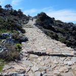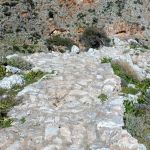 You can keep walking down over a dry creek bed for 10 minutes to the sea. There is supposed to be a delightful small beach and swimming with the ruins of the old harbor monastery, but it looked like a sprained ankle waiting to happen so we didn’t make this trek. If you want to get your 10,000 steps in on a nice hike on a cobble path with 100 switch-backs, this is the place for you. I’ll give it 4 stars.