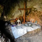 I’ve been told its the oldest monastery in Crete, founded in the mid-11th century (I haven’t tried to confirm this because I just don’t care). Its founder was St. John the Stranger or Hermit (Agios Ioannis Xenos or Erimitis), who lived in the cave with the temple dedicated to him (there’s a celebration on September 20 which we’ll miss). The surrounding cliffs are honeycombed with cave-side condos that housed a community of hermits (nobody knows how many because…..well, they were damn hermits), while some monks lived in the cells of the monastery. When the coasts of Crete were pillaged by bands of roving the pirates the monks were forced to move to a more remote place, so they abandoned Katholiko. This is sort of like living in Marfa and deciding to move to Terlingua because someone moved in next door and their gate is 6 miles from your front door. If the monks saw the pirates land, they’d only have about 4 hours to prepare for them.