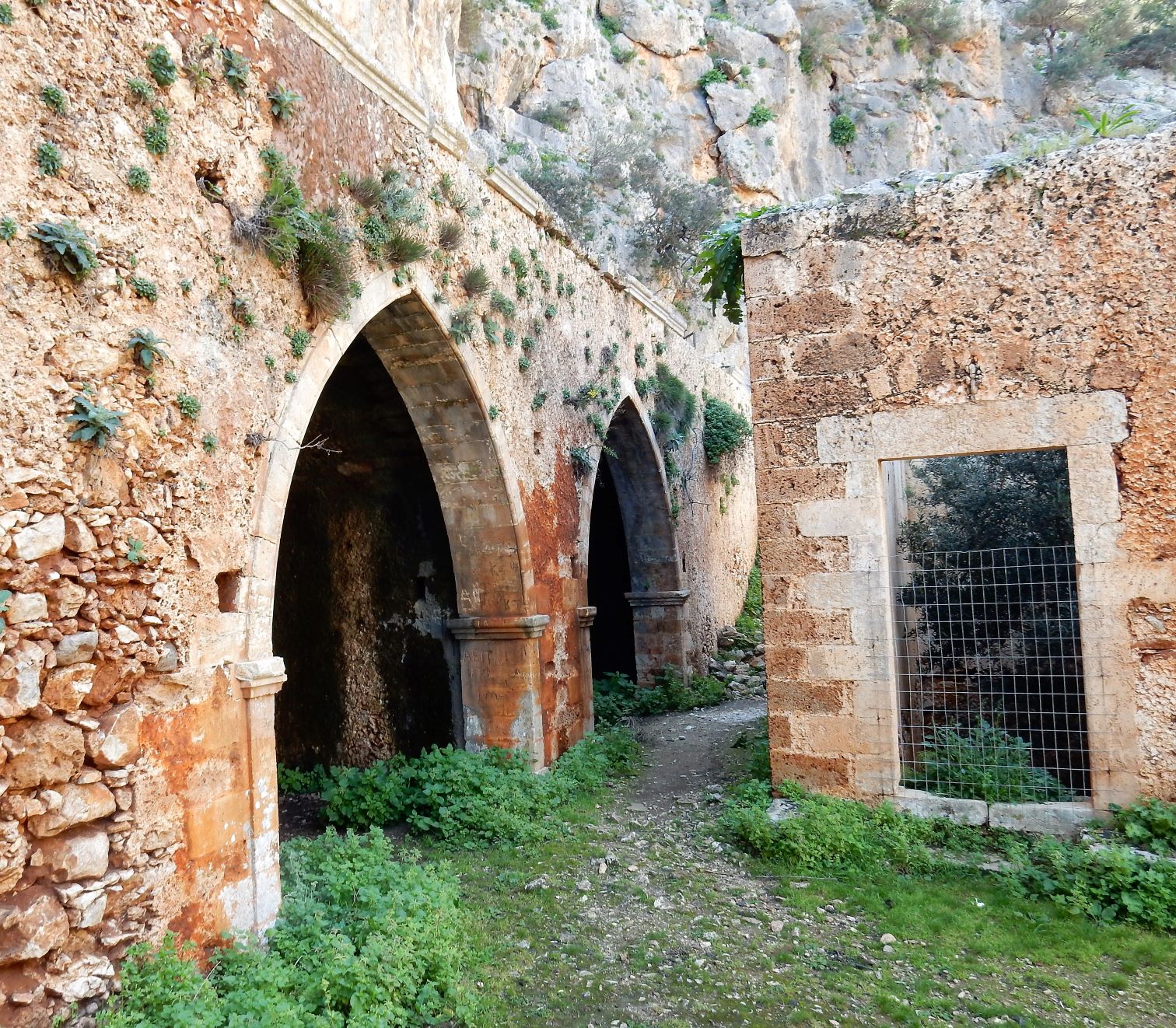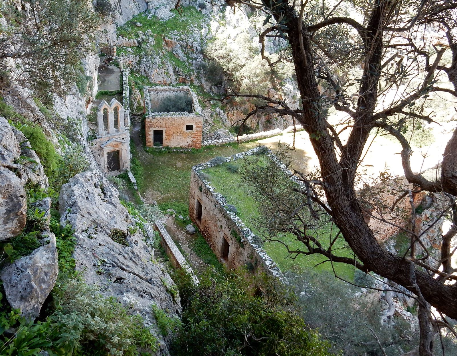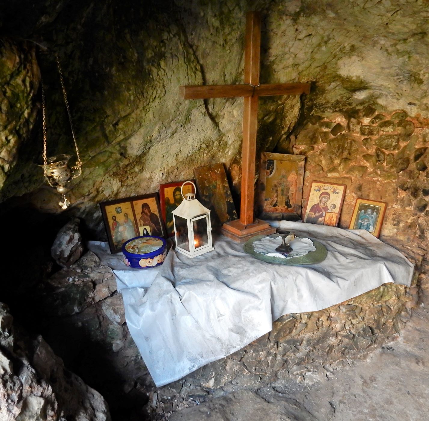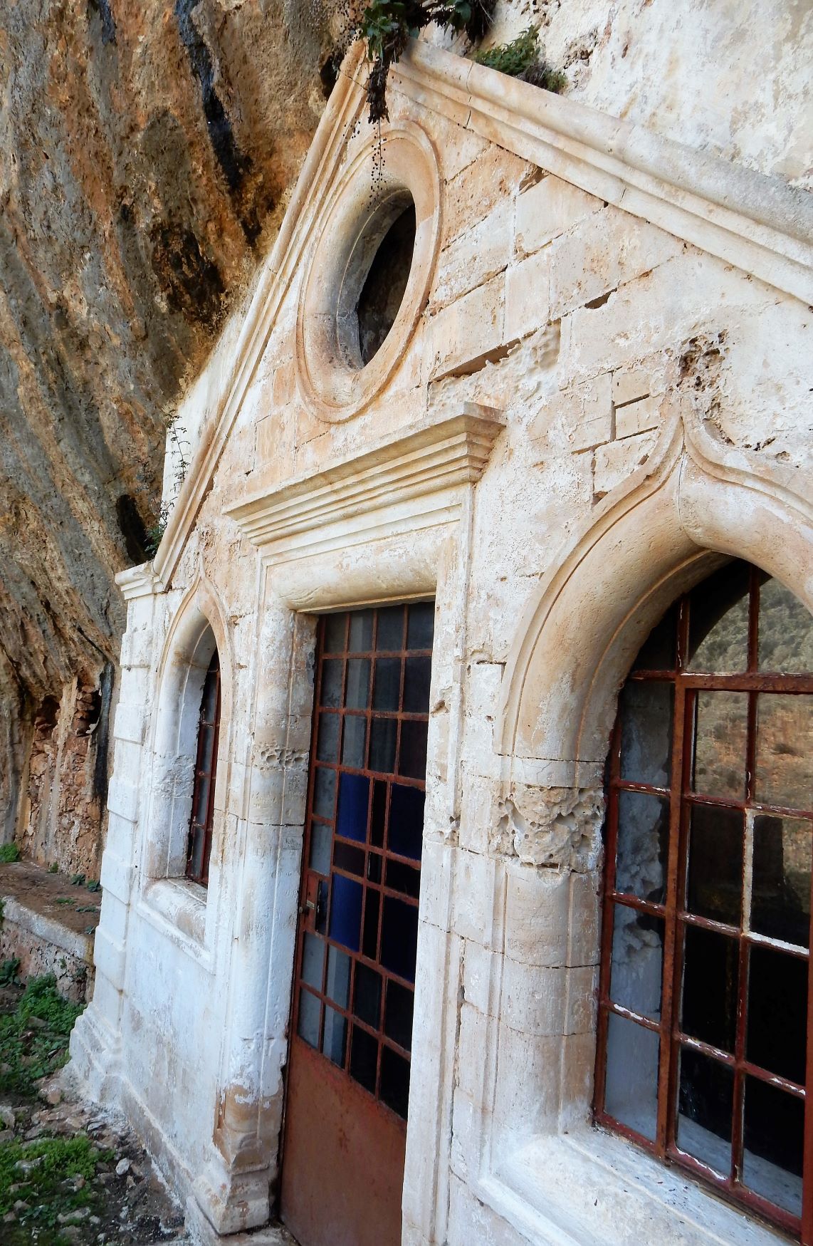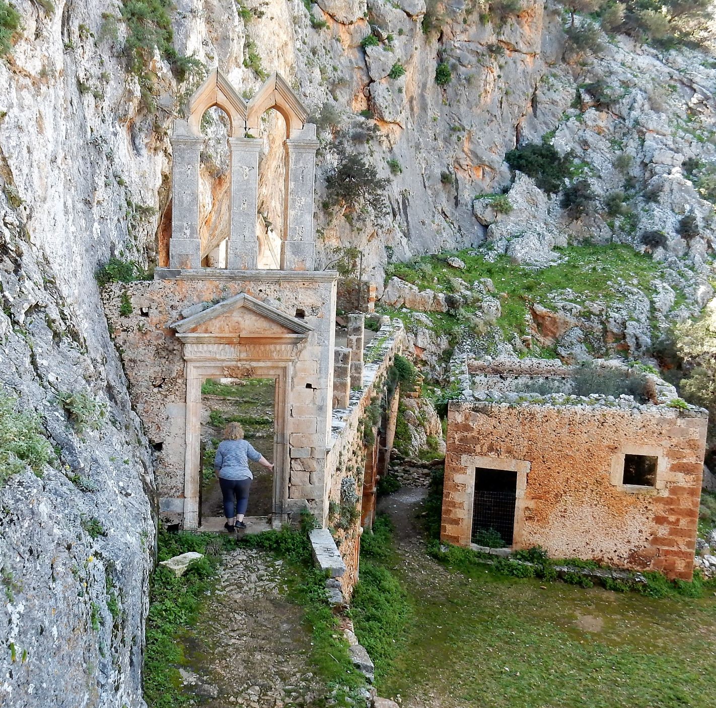I’ve been told its the oldest monastery in Crete, founded in the mid-11th century (I haven’t tried to confirm this because I just don’t care). Its founder was St. John the Stranger or Hermit (Agios Ioannis Xenos or Erimitis), who lived in the cave with the temple dedicated to him (there’s a celebration on September 20 which we’ll miss). The surrounding cliffs are honeycombed with cave-side condos that housed a community of hermits (nobody knows how many because…..well, they were damn hermits), while some monks lived in the cells of the monastery. When the coasts of Crete were pillaged by bands of roving the pirates the monks were forced to move to a more remote place, so they abandoned Katholiko. This is sort of like living in Marfa and deciding to move to Terlingua because someone moved in next door and their gate is 6 miles from your front door. If the monks saw the pirates land, they’d only have about 4 hours to prepare for them.