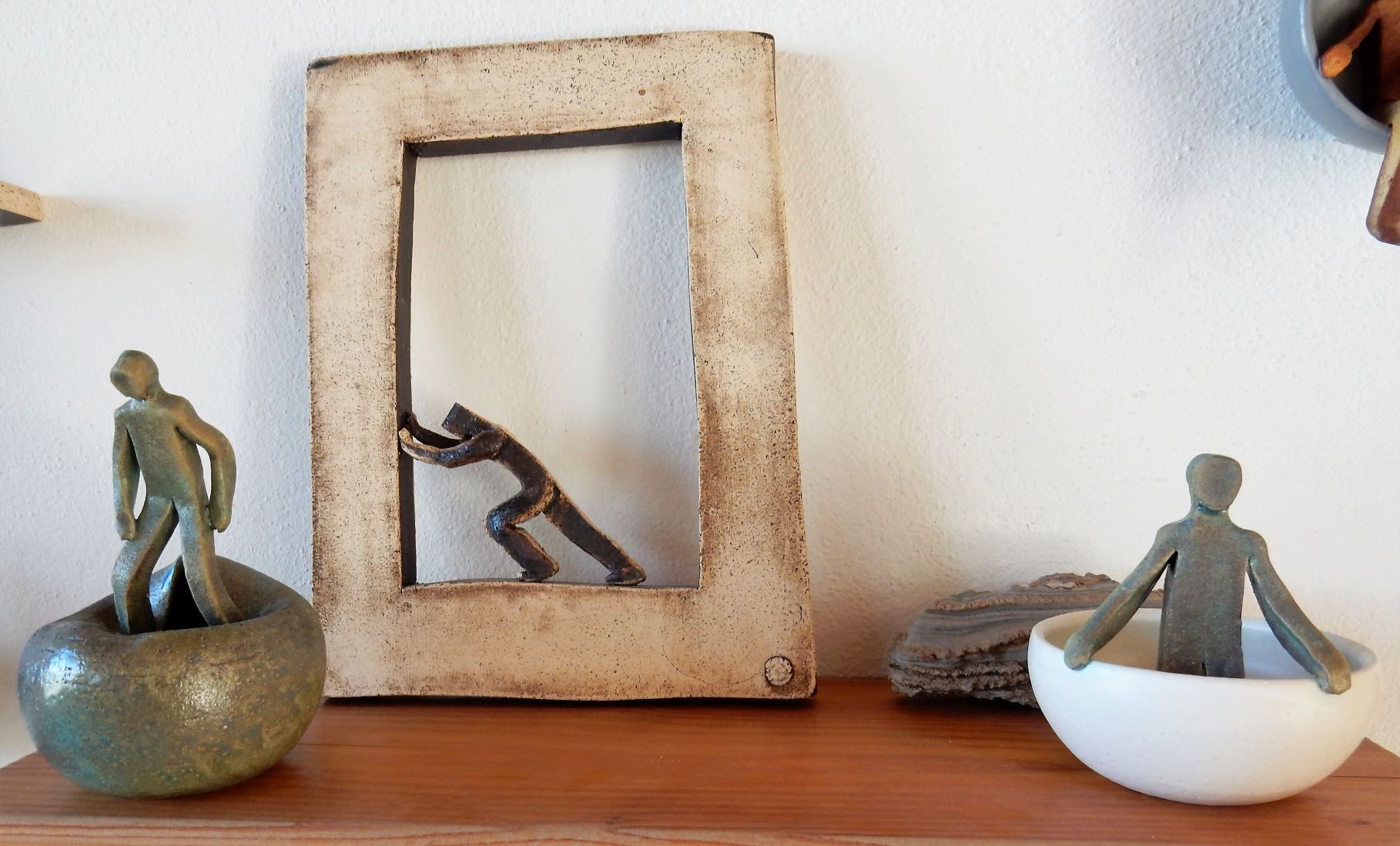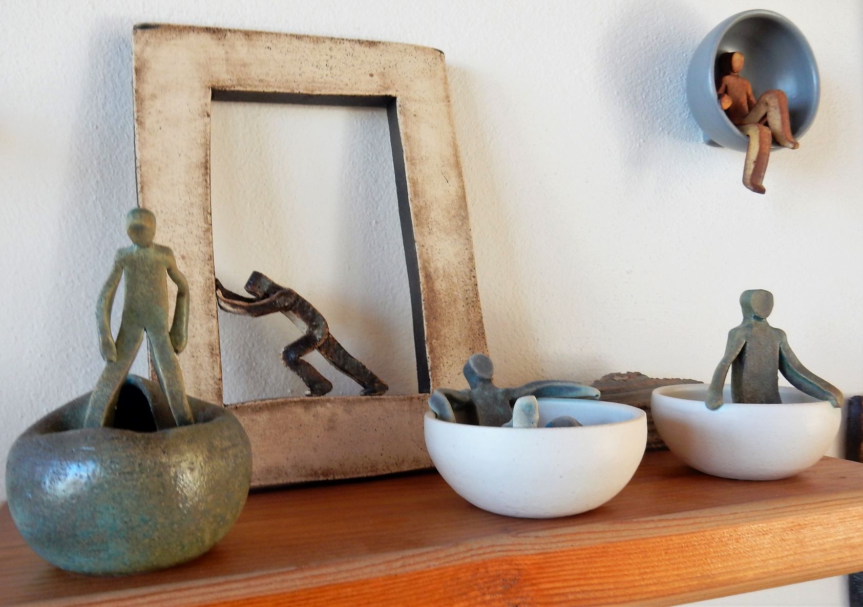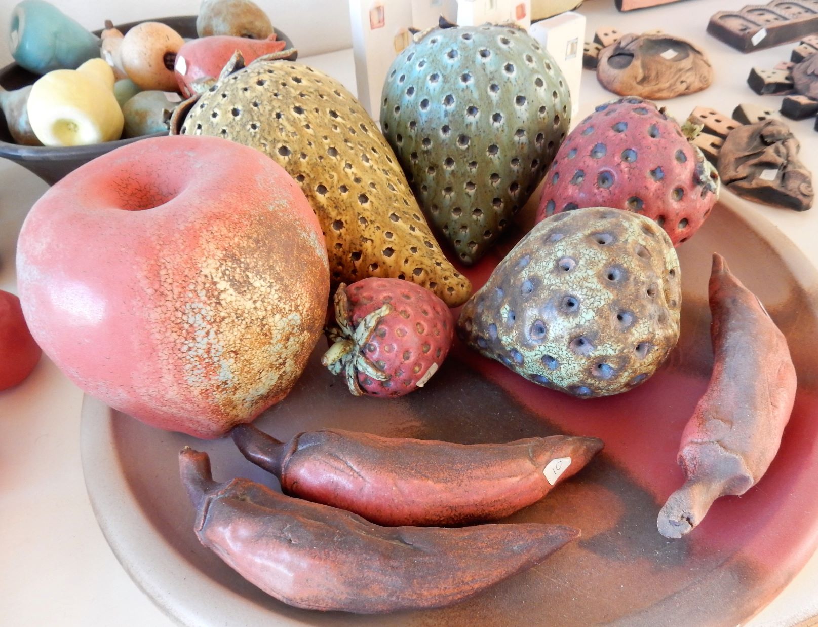 Once we found it, we weren’t sure it was open because we were the only visitors there. This is something we should be used to now, because its happened day after day after day. I shouldn’t complain about that, and we don’t want queues, but a few other guests makes you feel like you aren’t intruding on the artists in the studios. We should not have worried, we were welcome and the artists in all the studios very gracious. I didn’t take many pictures, because many artists don’t like that, but we did love Tetraktis pottery, and I took some pictures, and Ellen took a sculpture (which we paid for). I loved his glazes, and his quirky nature. The pictures tell the story.