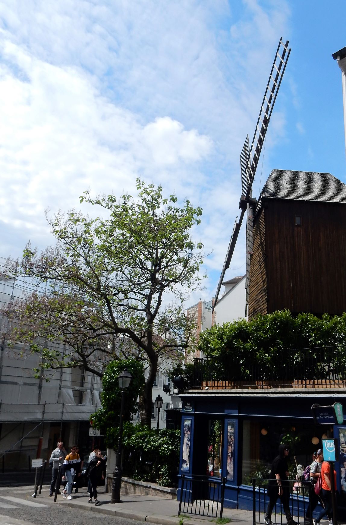 Part of the museum includes Renoir’s Gardens and a vineyard. The gardens have been renovated to reflect the way they looked in Renoir’s paintings. Not only are they peaceful, beautiful, and soothing, if you peek over the garden wall they provide a good view of the vineyard, which has existed since the Middle Ages and was replanted in 1933. Who knew that a vineyard exists in the middle of Paris? According to the New York Times, its working vineyard is said to make the most expensive bad wine in the city. I didn’t say that, but of course how would I know how good or bad the wine is but they auction it off and use the money to support the museum. We could have spent all day here, but we had to move down the street and have lunch in a windmill, Moulin de la Galette. Very touristy, but pretty cool, and the food surprised me, it was very good.