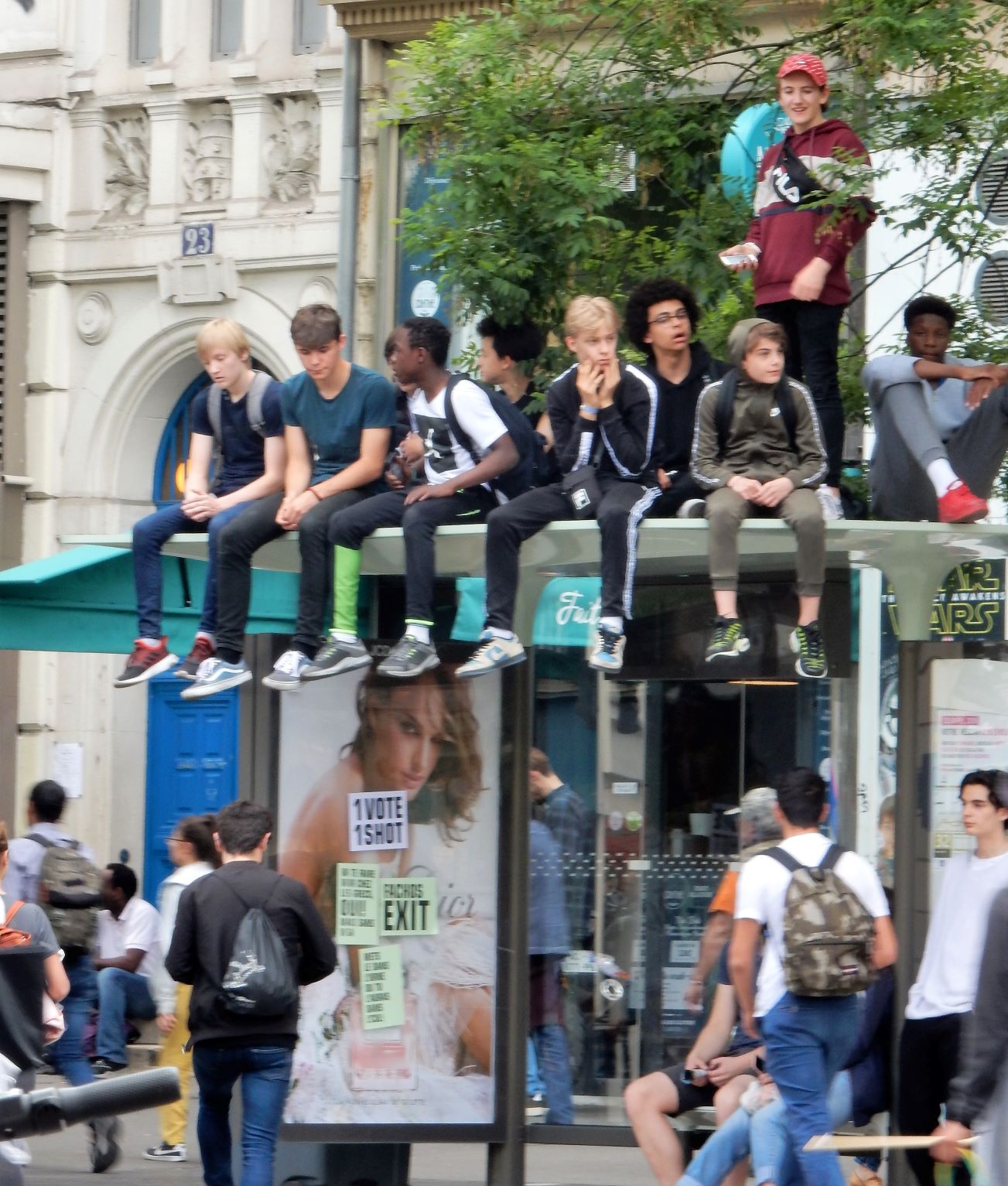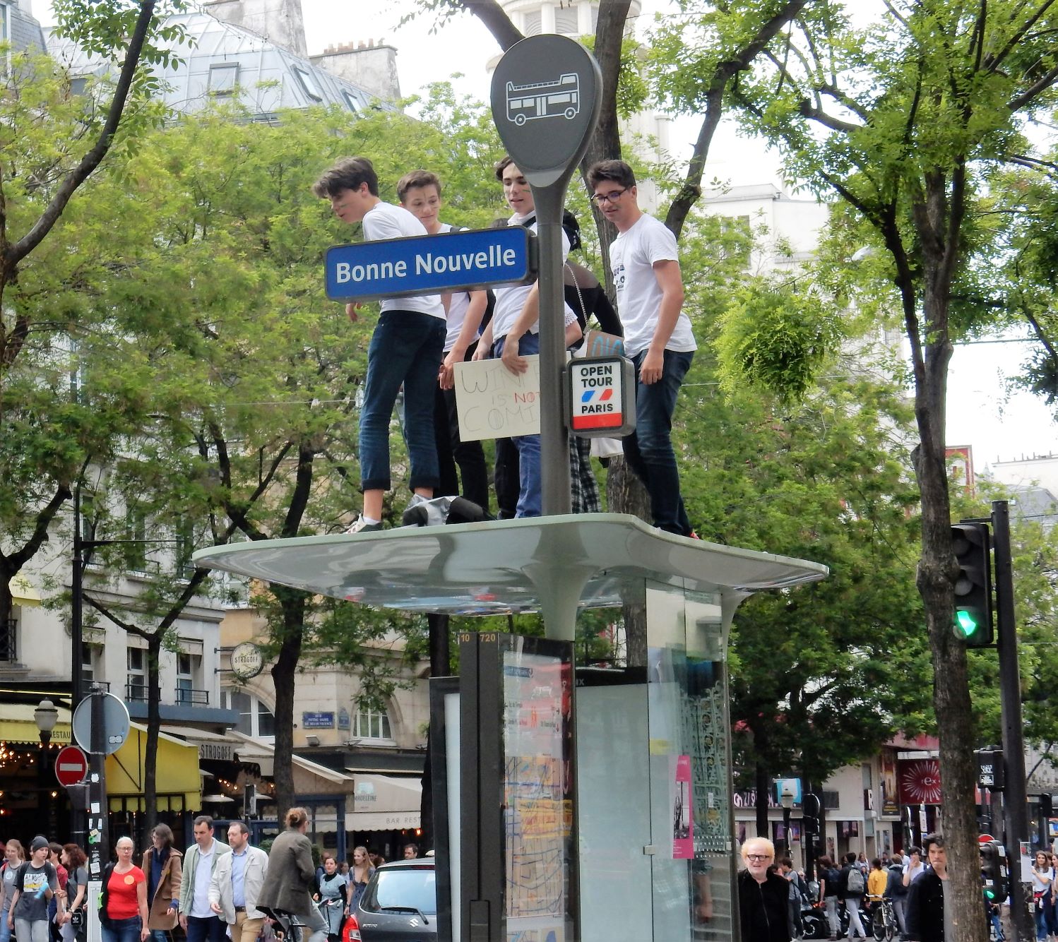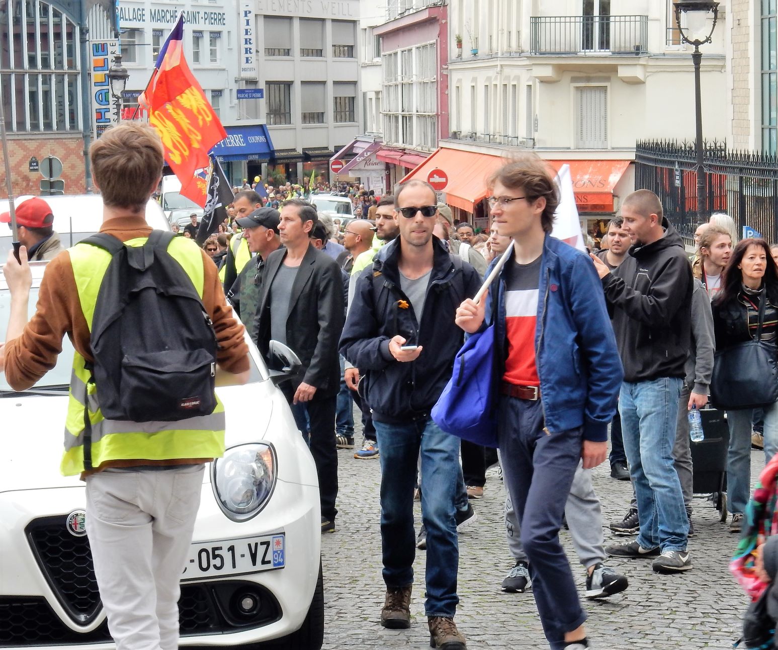 The protests have involved demonstrations and the blocking of roads and fuel depots, some of which developed into major riots, described as the most violent since those of May 1968, and the police response, resulting in multiple incidences of loss of limb, has been criticized for their harsh reaction to the mobs. On the day we saw the demonstration, the cops were pretty low key, though they were equipped with riot gear and didn’t give an inch when the demonstrators wanted to expand the protest area.