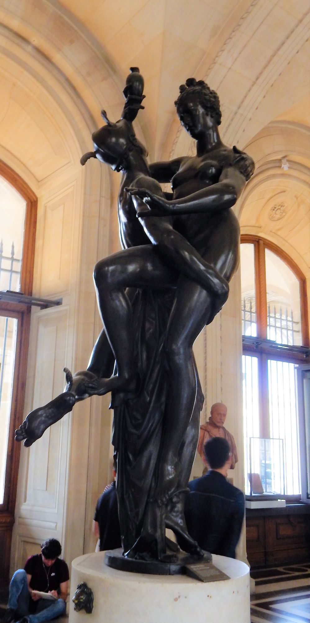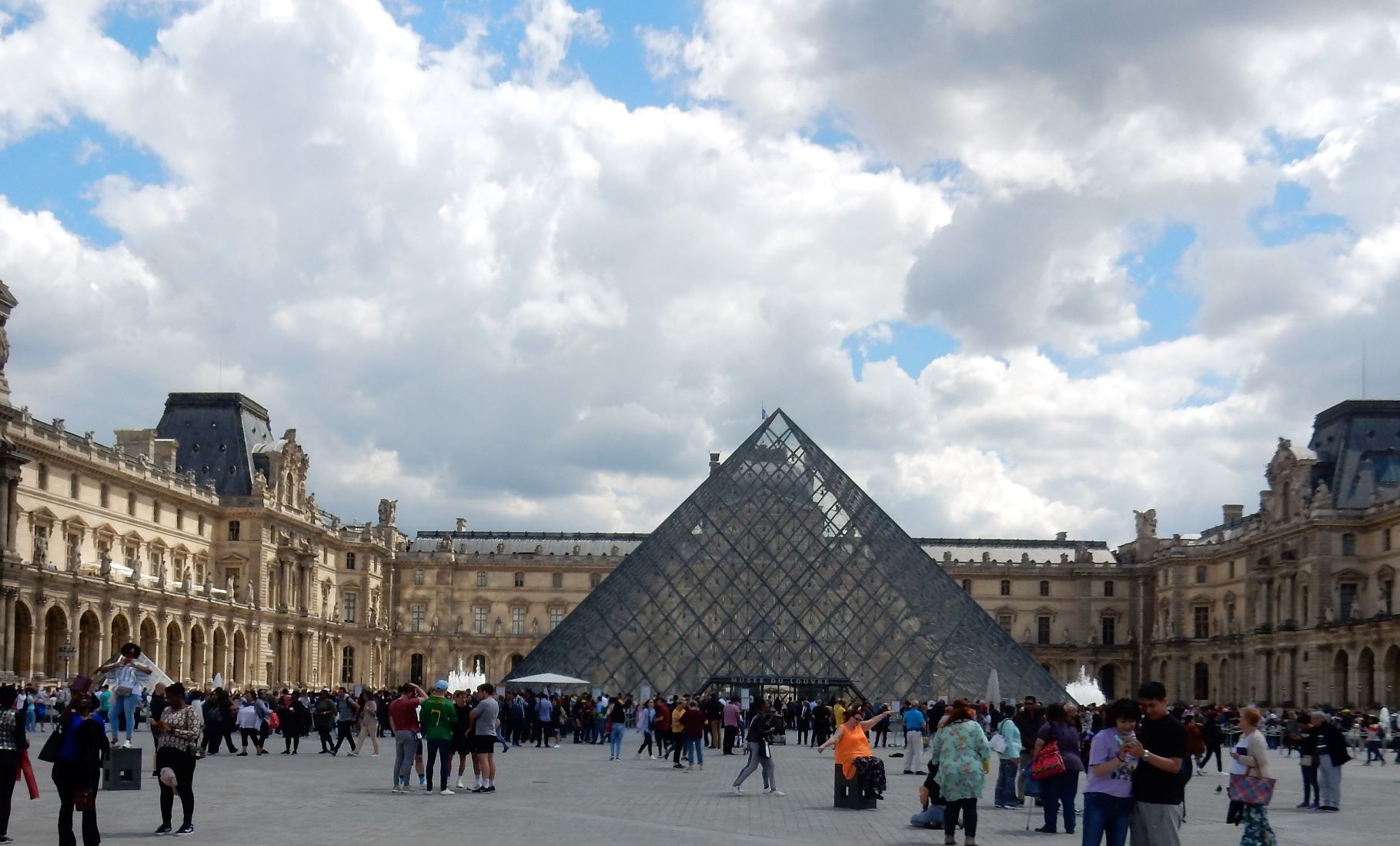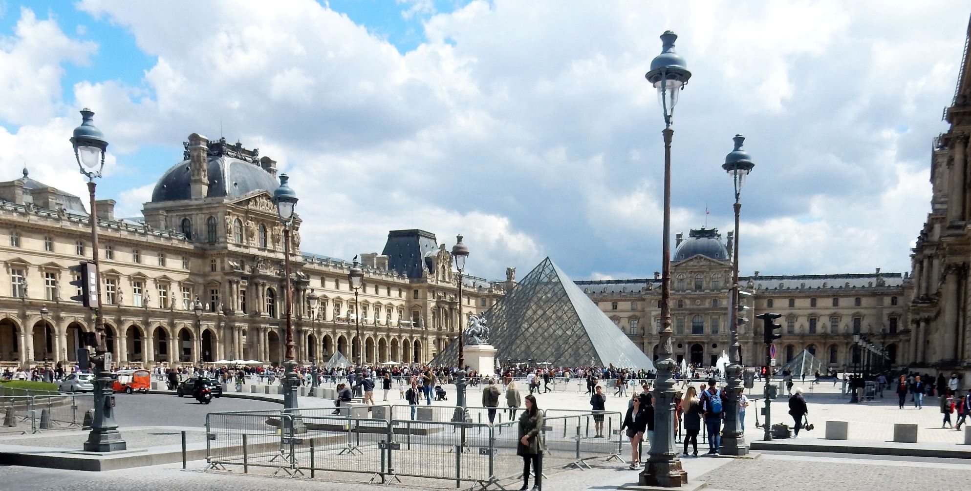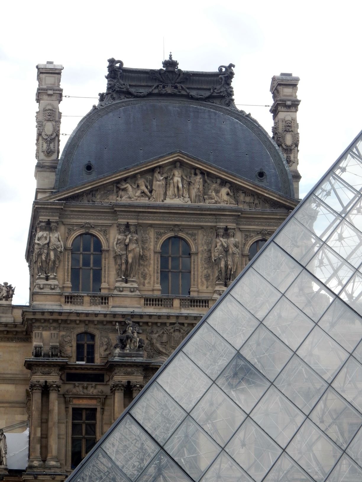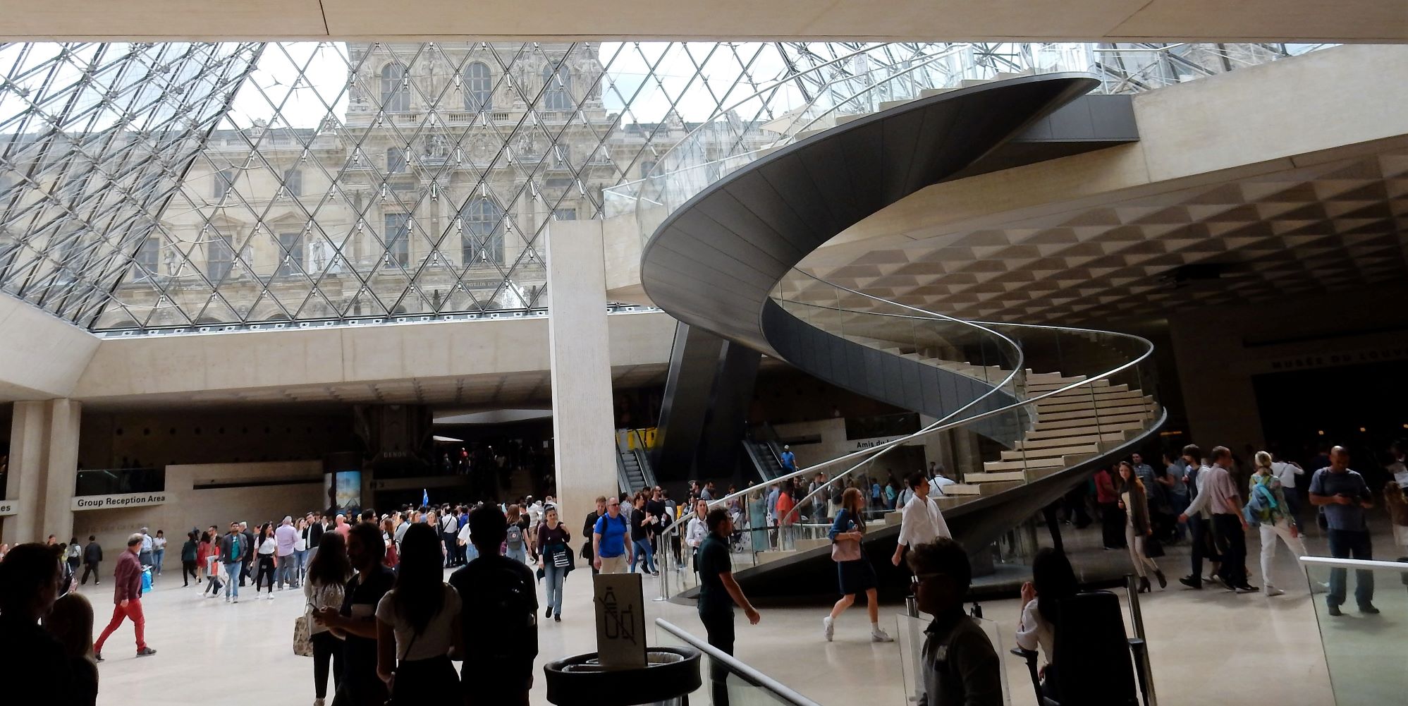 In 1983, French President François Mitterrand proposed, as one of his Grands Projets, the Grand Louvre Plan to renovate the building and relocate the Finance Ministry, allowing displays throughout the building. Architect I. M. Pei was awarded the project and proposed a glass pyramid to stand over a new entrance in the main court. The pyramid and its underground lobby were inaugurated on 15 October 1988 and the Louvre Pyramid was completed in 1989. People here either love it or hate it. I don’t think it fits, but it does allow massive amounts of daylight into the bowels of the museum.