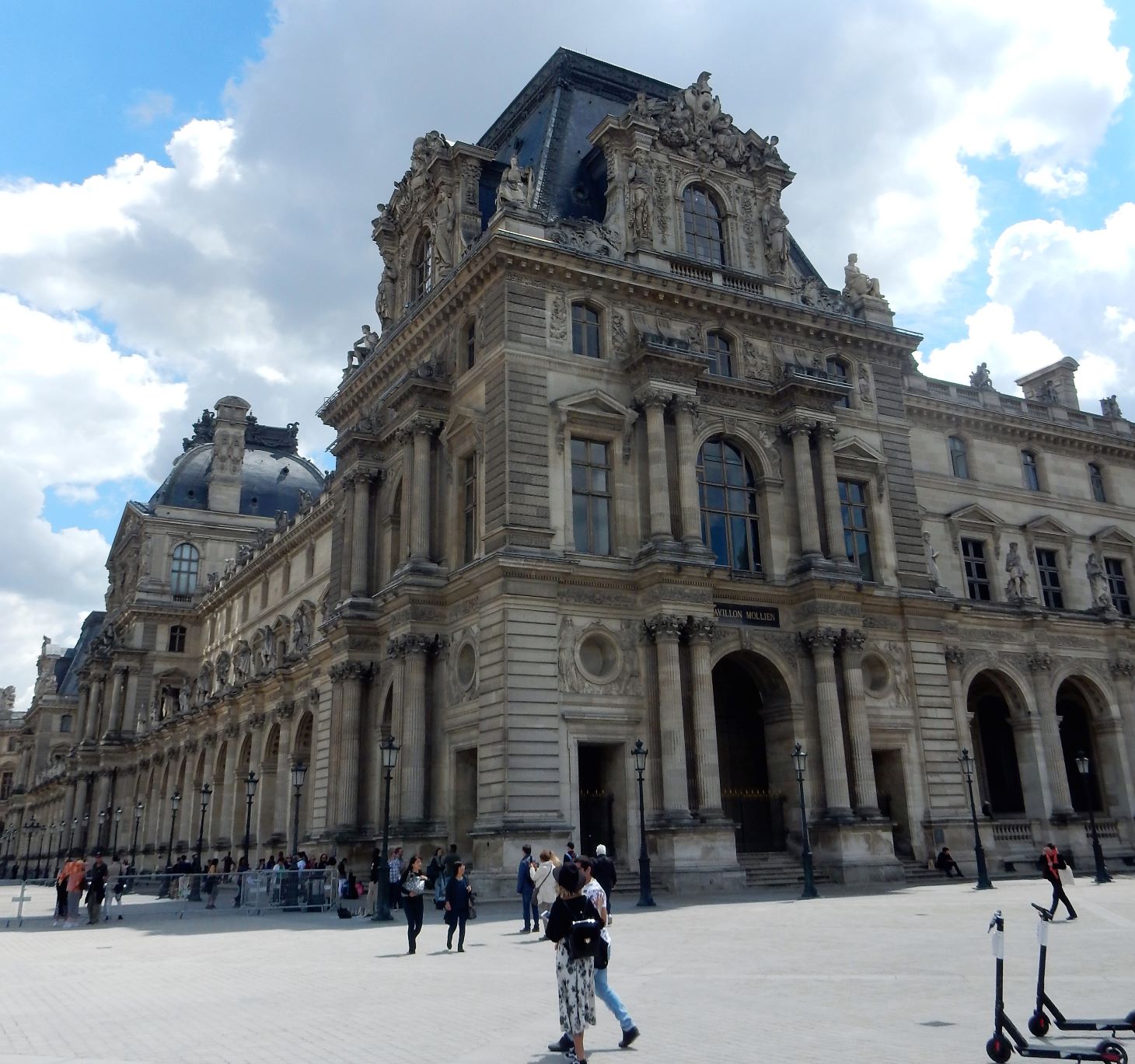 More about old Louie. It is said the Louvre was so large that he rode a horse from his bedroom to the dining room. I don’t mean he went outside to straddle the steed, he jumped out of bed in his jammies and trotted on down to the cafeteria to have brunch because it was so damned far. I suppose a maid followed along behind the horse with a broom and dustpan. That is totally ridiculous, didn’t he ever hear of moving sidewalks?