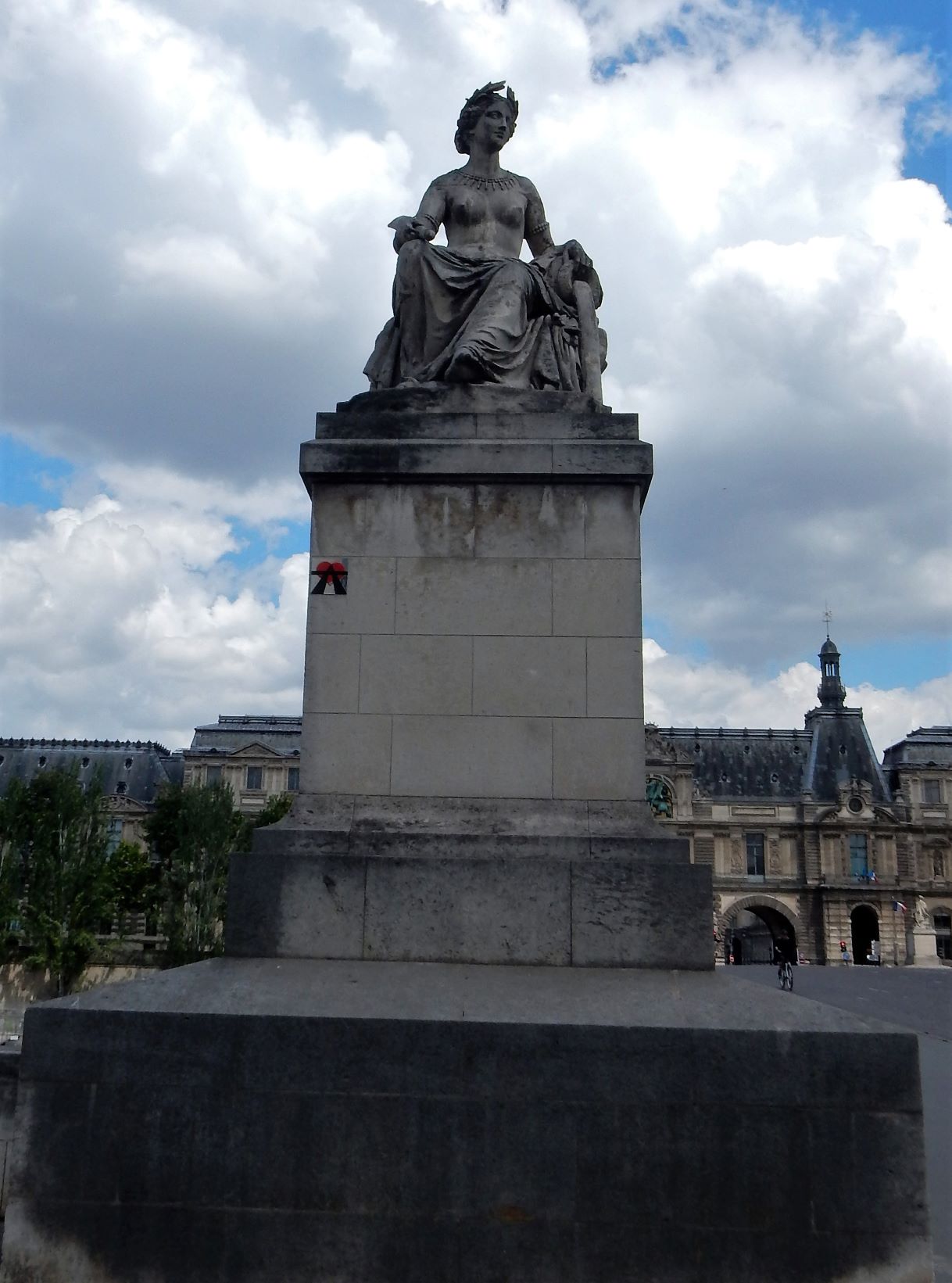 The Louvre is an anchor for the central district in Paris. It’s so large you can probably see it from orbit. The Louvre is located on the Right Bank of the Seine in the city’s 1st arrondissement (Air-O-dis-eh-ma). There are about 38,000 objects from prehistory to the 21st century are exhibited in the museum, which if they counted like Pere Lachaise cemetery they would say from 20,000 to 45,000 objects.