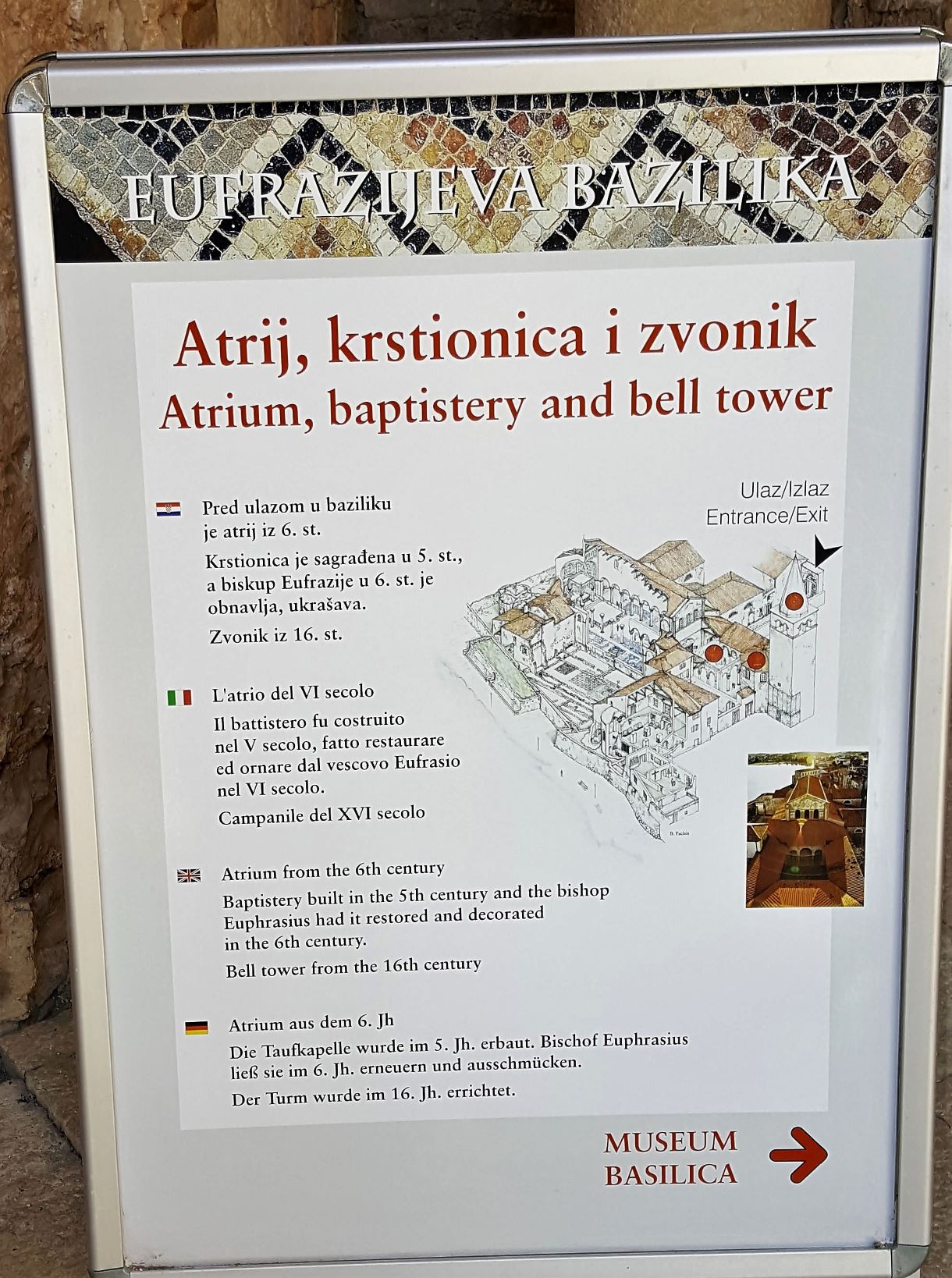 The Euphrasian Basilica is a Roman Catholic basilica. The episcopal complex includes the basilica itself, a sacristy, a baptistery and the bell tower of the nearby archbishop’s palace. It’s a big place.