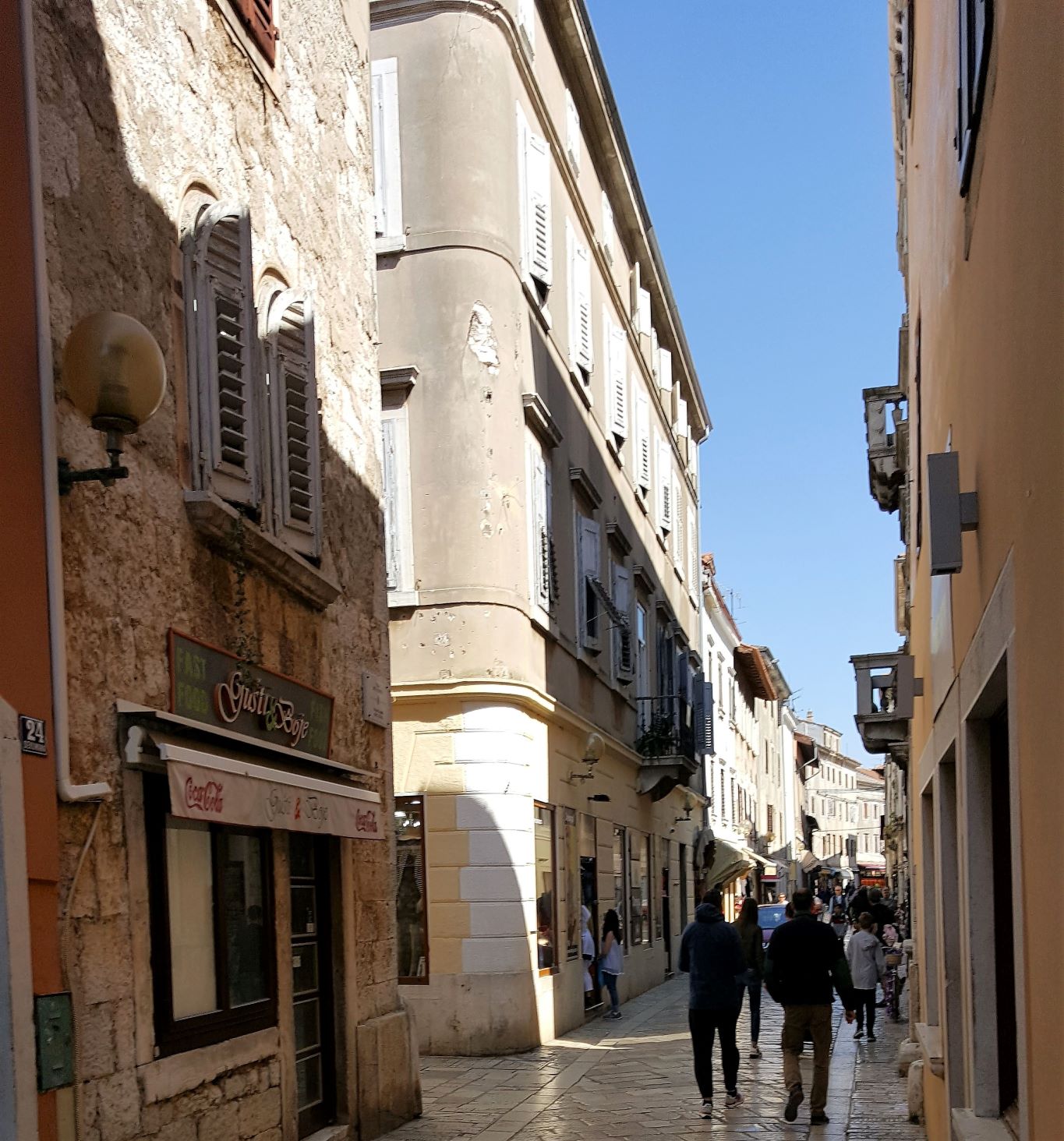 OK, so the town is old, and it has a rich history, which most Americans have no inkling to what it was. With the fall of the Roman empire (Western)in 476 CE, different rulers and powers governed. First, it was held by the Ostrogoths (they sound like Orcs to me) and after 539 was part of the Byzantine Empire. From 788 it was ruled by the Franks. A short independence period followed in the 12th century and later it was ruled by the Patriarchate of Aquileia. In 1267 Parenzo (the Venetian name for Poreč) became the first Istrian city that chose to become part of the Republic of Venice, whose rule lasted for more than five centuries. During this period several palaces, squares and religious buildings in Venetian style were built. In 1354 the city was destroyed by the Genoese (Republic of Genoa (c. 1100–1805), a former state in Liguria). If all this wasn’t enough, the population of Poreč was decimated by plague at the end of the 16th and the beginning of the 17th century. After the fall of the Venetian Republic, Parenzo came under the sovereignty of the Habsburg Monarchy. I’m not sure how these people know who is ruling them or what language they should be speaking. It’s a lot like Game of Thrones.