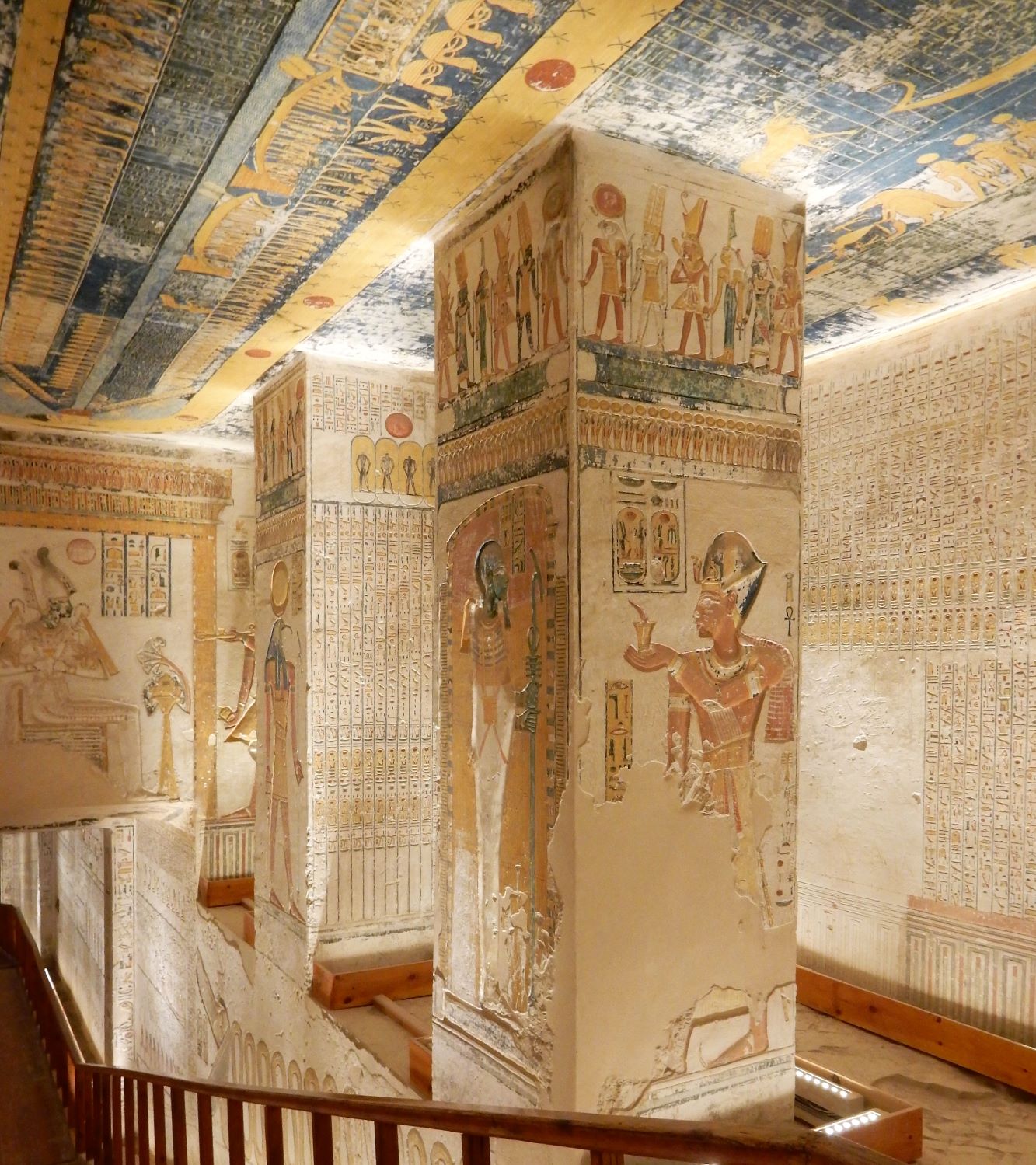 The Valley of the Kings contains 63 tombs and chambers. It was the principal burial place of the major royal figures of the Egyptian New Kingdom, as well as a number of privileged nobles. The royal tombs are decorated with scenes from Egyptian mythology and give clues as to the beliefs and funerary rituals of the period. Almost all of the tombs seem to have been opened and robbed in antiquity, but they still give an idea of the opulence and power of the pharaohs. My biggest gripe is you can’t tell which tomb paintings are original, and which ones have been redone like paint-by-numbers hobby kits. I’ve tried to do more research on the tombs, but its tedious. Every time I try to search something all you get on the first 12 pages on the search engine are ads for tour groups, hotels, tour guides, cruises, papyrus sales events, flight offers, and porno sites with Cleopatra wearing, well….not much.