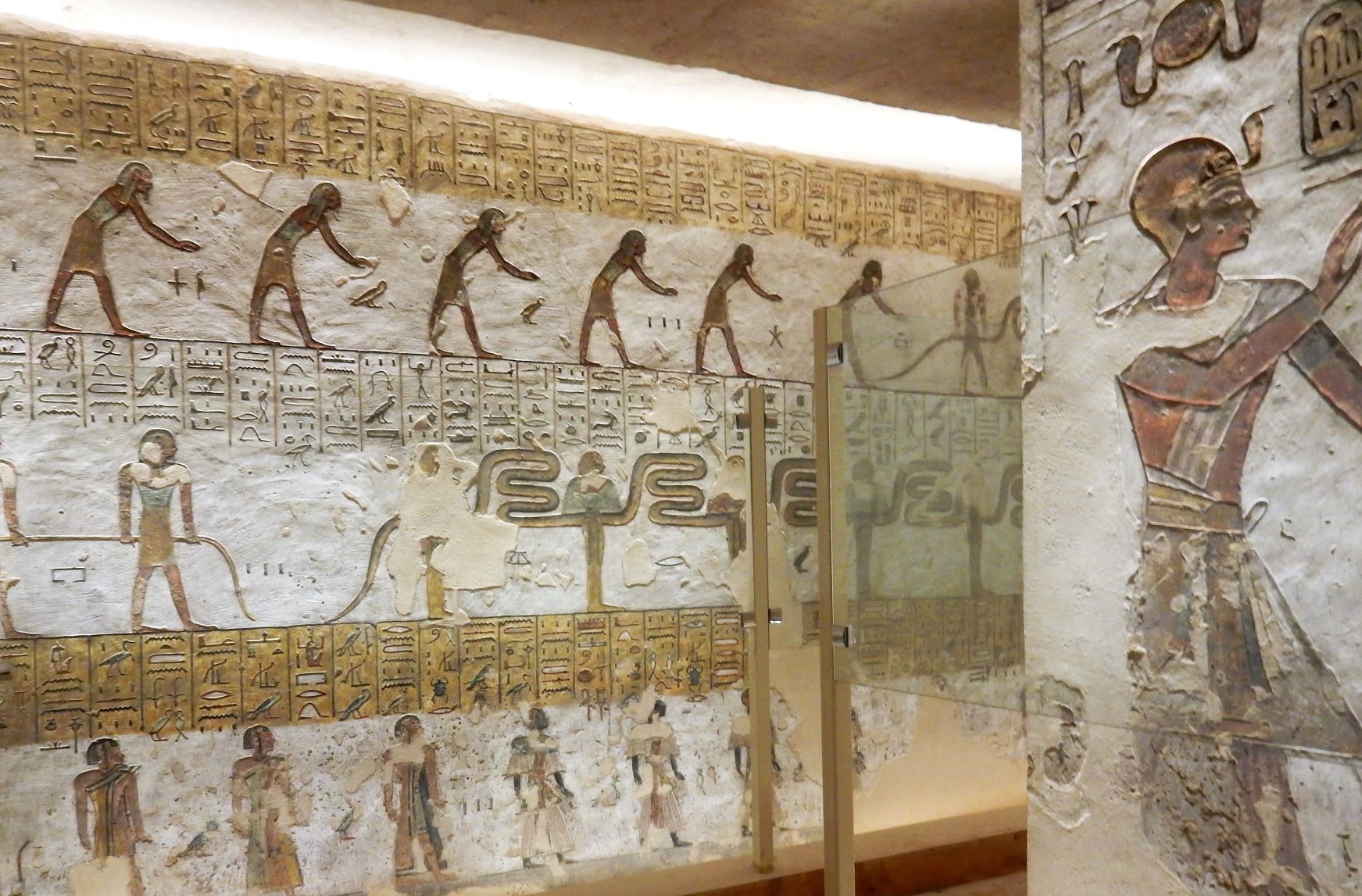 In 2005, a team led by archaeologist Otto Schaden discovered the valley’s first unknown tomb since Tutankhamun’s (which was uncovered by Howard Carter in 1922) . The site, dubbed KV 63, was found only about 50 feet (15 meters) from the walls of Tut’s resting place. That’s the thing I want to convey here, these tombs are not scattered all across the desert, they are like Brooklyn condos….one on top of the other. You can’t dig a basement for your house without finding another tomb. Just ask the people of Alabaster City who have been moved out of their houses because someone found a new tomb when they tried to dig a root cellar during a home renovation in 2015 (the government actually force relocated an entire village on the edge of Luxor). At least one late Ramesside pharaoh’s tomb (Ramses VIII) is still undiscovered, and many believe it may be found within the valley. As fun as it may sound, I’m not volunteering to be apart of the tomb hunter expedition. Of the 63 tombs, only 10 or 11 are open at one time. The rest are closed to keep the sweaty tourist from corrupting the tomb paintings with their….sweat. Humidity is a very bad thing in these tombs. And you cannot believe how incredibly hot and dry it is here. Hell, we are here in March. Just wait until August. The locals say that they “sleep at home from June through August” I don’t blame them, not even mad dogs and Englishmen would venture out to these tombs in August.
