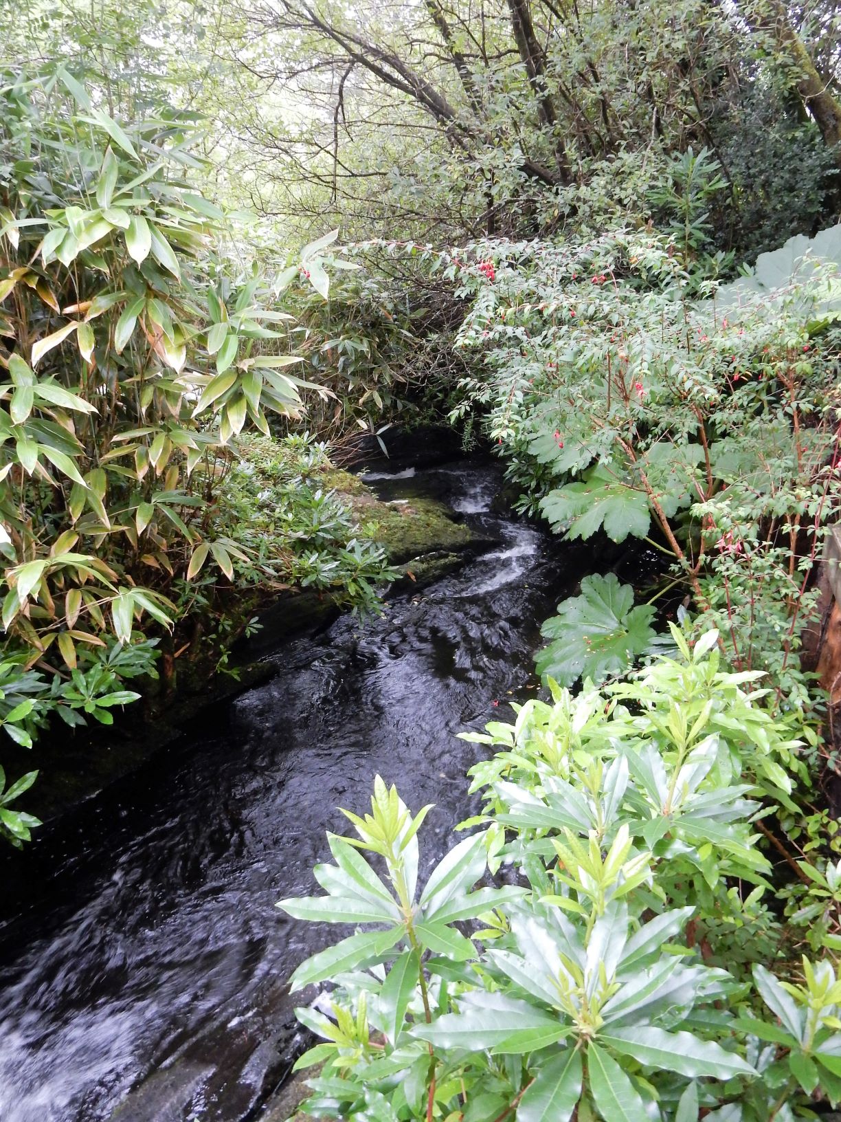 The art works are mostly by Sheena, a prolific artist with an impressive range of work from paintings to textiles, mixed media, mosaics, ceramics and sculpture, and a few thrown in by Kurt, her writer husband. A major part of the allure of the garden is the surrounding scenery from the garden, the sound of trickling water and the stunning lushness of the streams, waterfalls and local and imported flora.