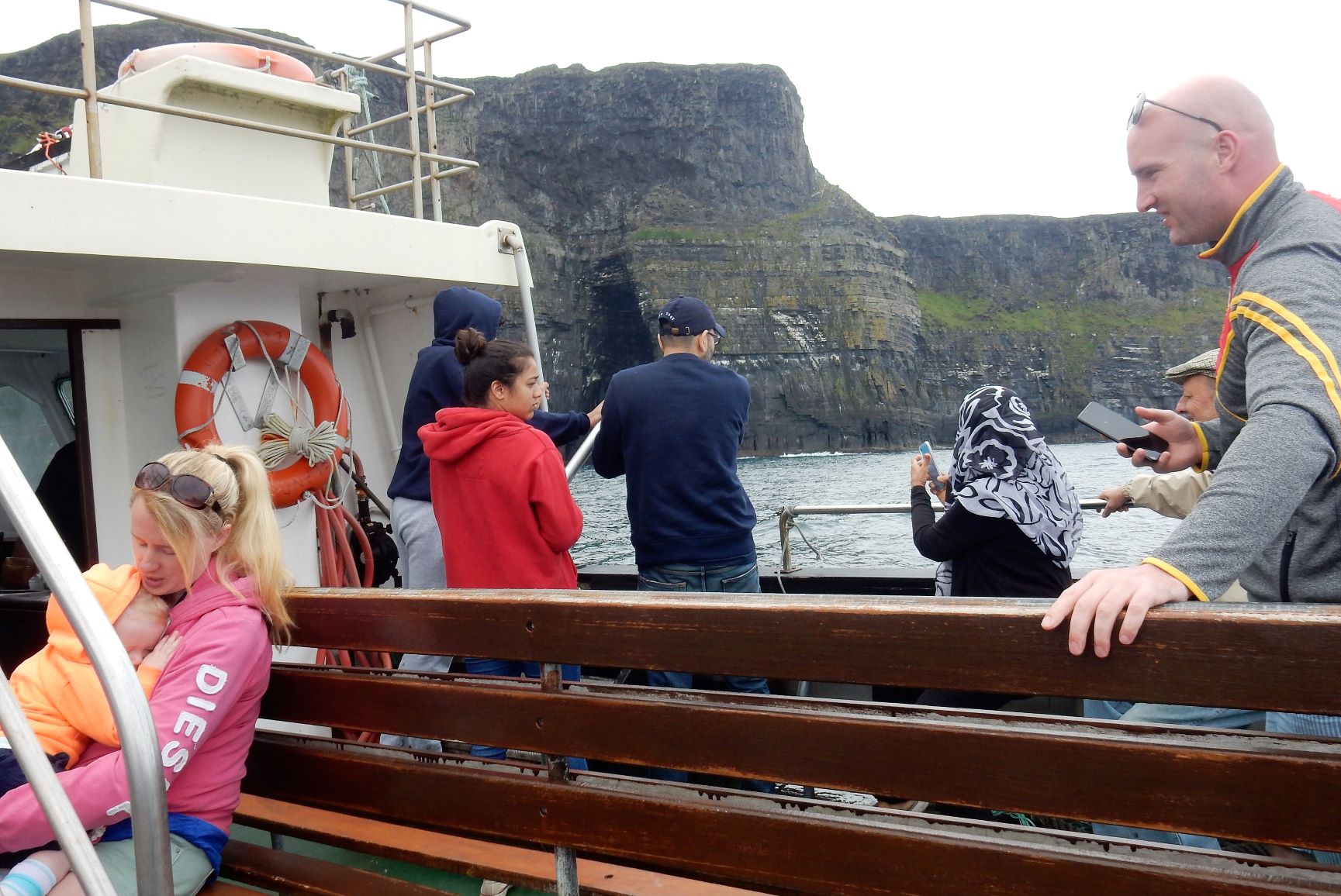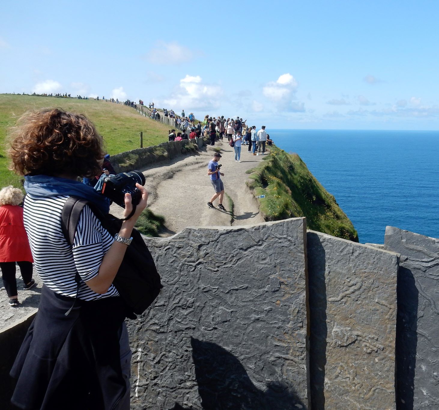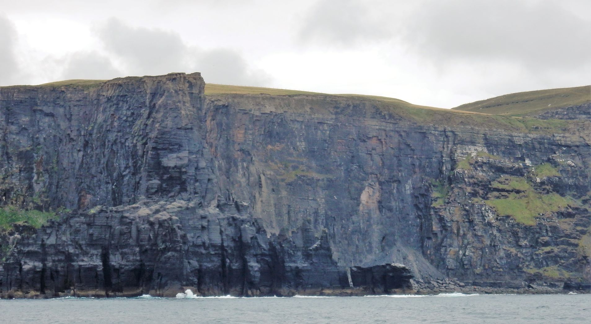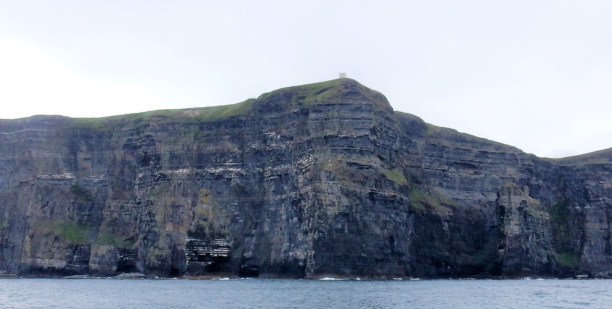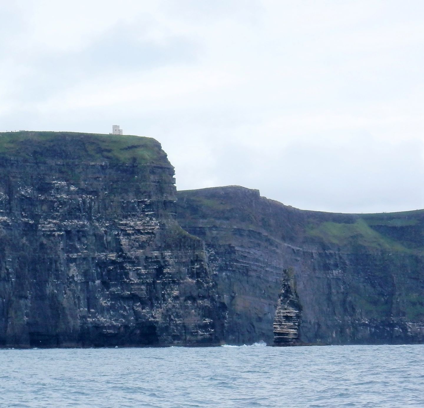From the cliffs, you can see the Aran Islands, the Maumturks and Twelve Pins mountain ranges to the north in County Galway, and Loop Head to the south. The tourist department claims the cliffs rank among the most visited tourist sites in Ireland, with around 1.5 million visits per year. I think most of them were there on the Saturday we visited.