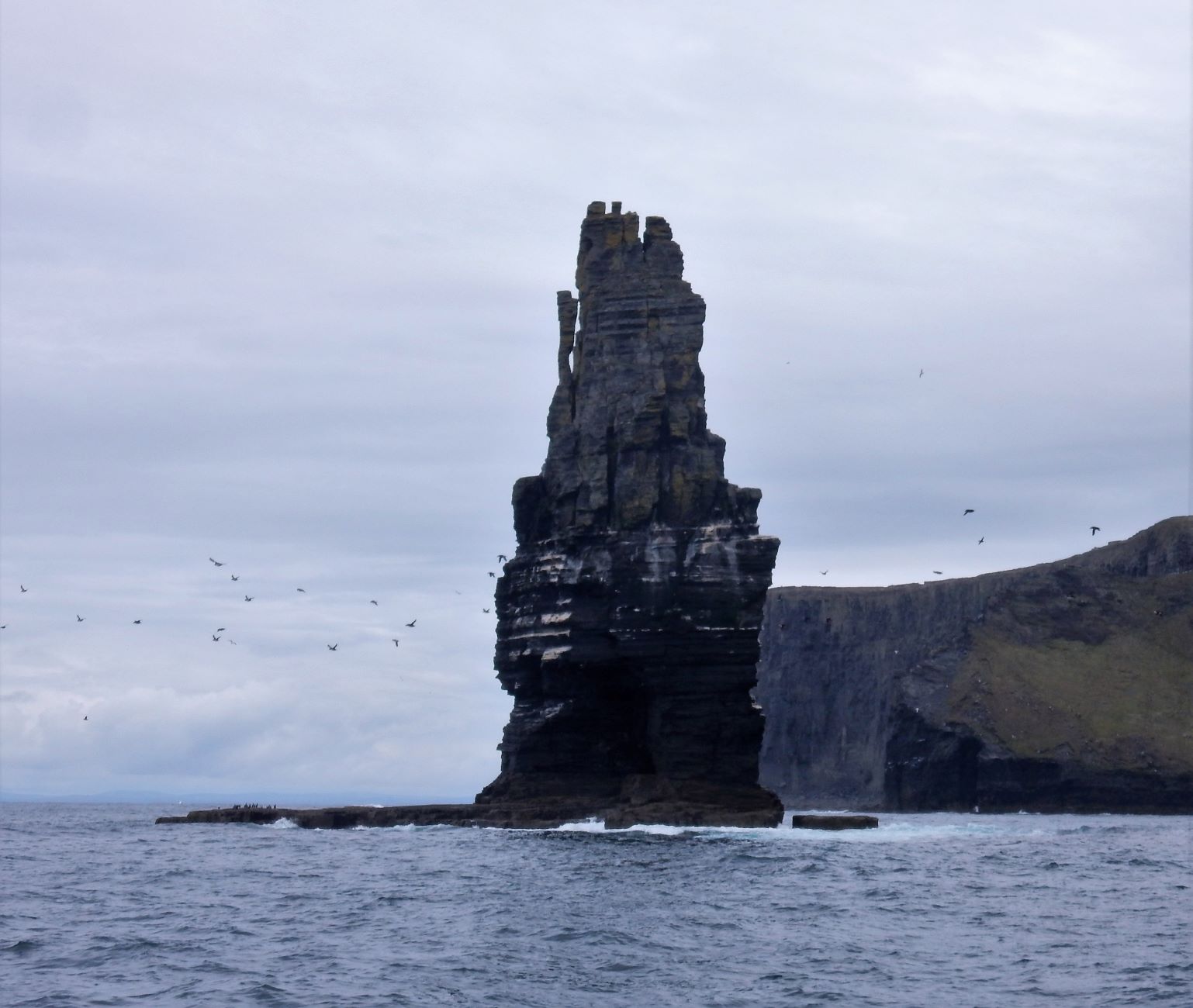 The next morning after walking the cliffs we took a tour boat for a one hour cruise at the base of Moher. It’s a great way to see the scale of these formations, sea birds, have a nice boat ride, and even the Harry Potter cave (Harry Potter and the Half-Blood Prince (2009)). One of the most impressive formations is Branaunmore, a 67-meter high sea stack at the foot of the cliffs. It was once part of the cliffs, but coastal erosion gradually removed the layers of rock that joined it with the mainland. A large sea arch can also be seen at Hag’s Head below the Napoleonic signal tower and many smaller sea arches can be seen from the tour boats. Many people take the half or full day voyages out to the Aran Islands, but we passed on this opportunity since those type trips can trap you and may prove to be a waste of time. We prefer scheduled departures so we can spend a lot of time on an island, or get the hell out of Dodge if you don’t like the destination. We want to manage our schedules, not be managed.